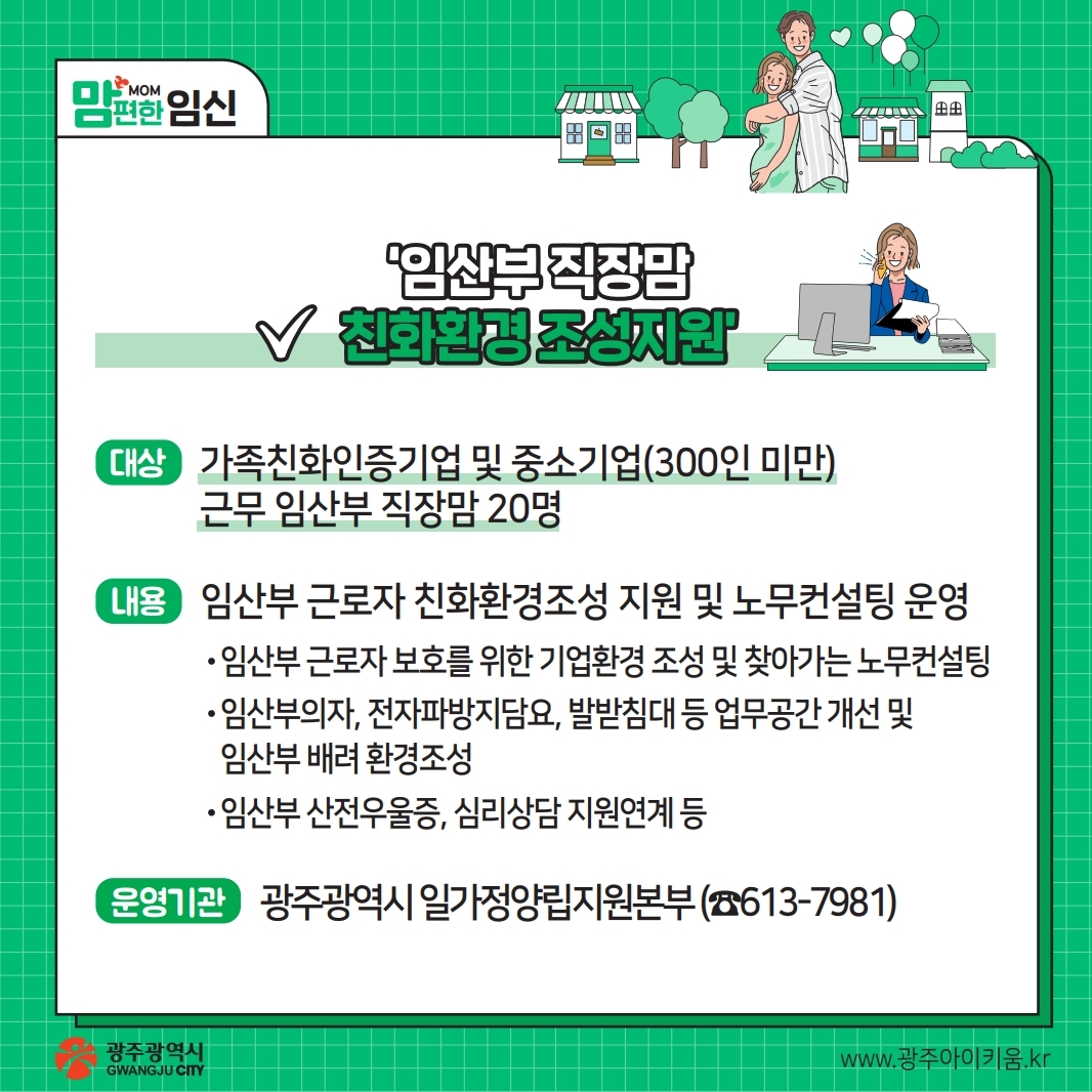home 맘편한 내★일, 광주아이키움2.0 결혼·임신·출생 영유아 초·중·고 다양한 가족 일생활균형 커뮤니티 아동돌봄지원 소통방 나눔방 광주 아이키움 상담방 돌봄정보방 성폭력 피해 상담 및 사건지원 공지사항 이벤트소식 참여게시판 카드뉴스 동영상 아이키움 칼럼 성평등 육아웹툰 로고&캐릭터 <맘MOM편한광주2> 맘MOM편한 임신 등록일 : 2021-06-02 16:13 작성자 : 운영자 조회수 : 1050 첨부파일 맘편한임신.JPG 다운로드 목록