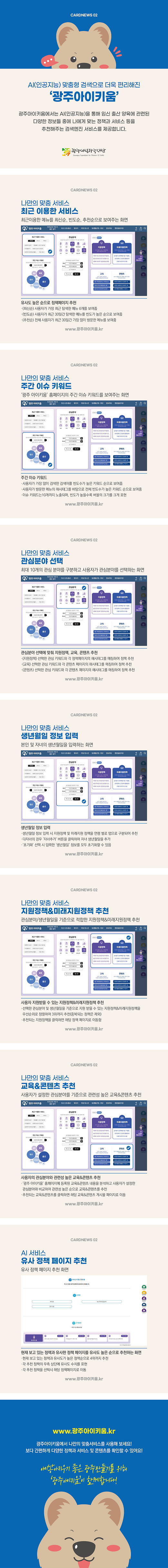 home 맘편한 내★일, 광주아이키움2.0 결혼·임신·출생 영유아 초·중·고 다양한 가족 일생활균형 커뮤니티 아동돌봄지원 소통방 나눔방 광주 아이키움 상담방 돌봄정보방 성폭력 피해 상담 및 사건지원 공지사항 이벤트소식 참여게시판 카드뉴스 동영상 아이키움 칼럼 성평등 육아웹툰 로고&캐릭터 돌봄같이 19호 - AI(인공지능) 맞춤형 검색으로 더욱 편리해진 '광주아이키움' 등록일 : 2021-12-03 18:26 작성자 : 운영자 조회수 : 950 첨부파일 카드뉴스02 (1).jpg 다운로드 목록