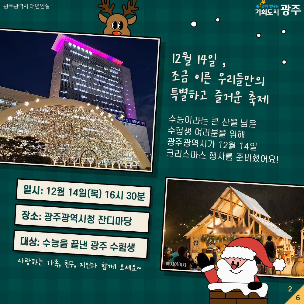 home 맘편한 내★일, 광주아이키움2.0 결혼·임신·출생 영유아 초·중·고 다양한 가족 일생활균형 커뮤니티 아동돌봄지원 소통방 나눔방 광주 아이키움 상담방 돌봄정보방 성폭력 피해 상담 및 사건지원 공지사항 이벤트소식 참여게시판 카드뉴스 동영상 아이키움 칼럼 성평등 육아웹툰 로고&캐릭터 시청&조이 미리 크리스마스 초대합니다! 등록일 : 2023-12-04 15:29 작성자 : 운영자 조회수 : 773 첨부파일 1.jpg 다운로드 목록