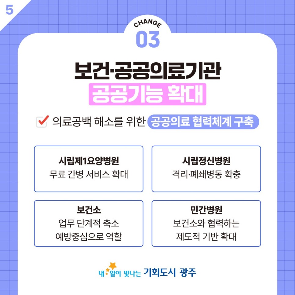 home 맘편한 내★일, 광주아이키움2.0 결혼·임신·출생 영유아 초·중·고 다양한 가족 일생활균형 커뮤니티 아동돌봄지원 소통방 나눔방 광주 아이키움 상담방 돌봄정보방 성폭력 피해 상담 및 사건지원 공지사항 이벤트소식 참여게시판 카드뉴스 동영상 아이키움 칼럼 성평등 육아웹툰 로고&캐릭터 돌봄은 촘촘하게, 생명은 소중하게! 광주다움 통합돌봄 시즌2 등록일 : 2024-02-20 11:15 작성자 : 운영자 조회수 : 825 첨부파일 11.png 다운로드 광주다움 통합돌봄!한층 더 새롭게 한층 더 촘촘하게한층 더 소중하게변했습니다.<광주다움 통합돌봄 시즌2>[출처] 돌봄은 촘촘하게, 생명은 소중하게! 광주다움 통합돌봄 시즌2| 작성자- 광주광역시 목록