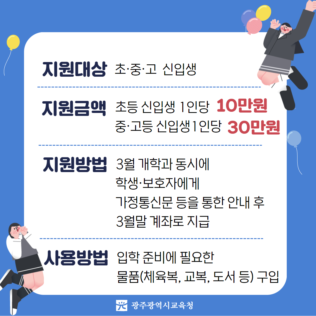 home 맘편한 내★일, 광주아이키움2.0 결혼·임신·출생 영유아 초·중·고 다양한 가족 일생활균형 커뮤니티 아동돌봄지원 소통방 나눔방 광주 아이키움 상담방 돌봄정보방 성폭력 피해 상담 및 사건지원 공지사항 이벤트소식 참여게시판 카드뉴스 동영상 아이키움 칼럼 성평등 육아웹툰 로고&캐릭터 2024 초,중,고 신입생 입학준비금 지원 등록일 : 2024-02-27 15:40 작성자 : 운영자 조회수 : 756 첨부파일 1.jpg 다운로드 <출처:광주광역시교육청> 목록