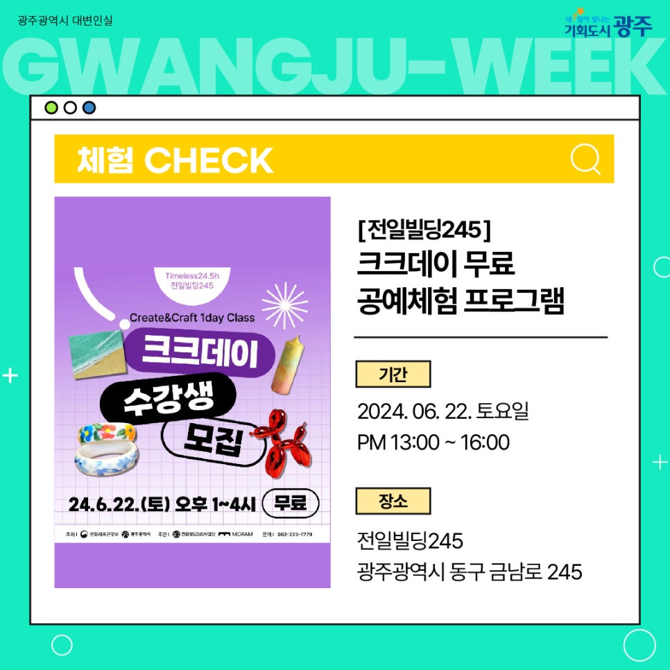 home 맘편한 내★일, 광주아이키움2.0 결혼·임신·출생 영유아 초·중·고 다양한 가족 일생활균형 커뮤니티 아동돌봄지원 소통방 나눔방 광주 아이키움 상담방 돌봄정보방 성폭력 피해 상담 및 사건지원 공지사항 이벤트소식 참여게시판 카드뉴스 동영상 아이키움 칼럼 성평등 육아웹툰 로고&캐릭터 이번주 광주 소식💕 등록일 : 2024-06-17 16:57 작성자 : 운영자 조회수 : 458 첨부파일 위클리광주.jpg 다운로드 목록