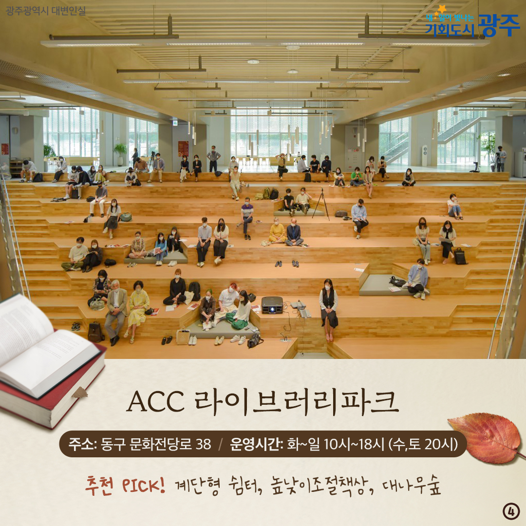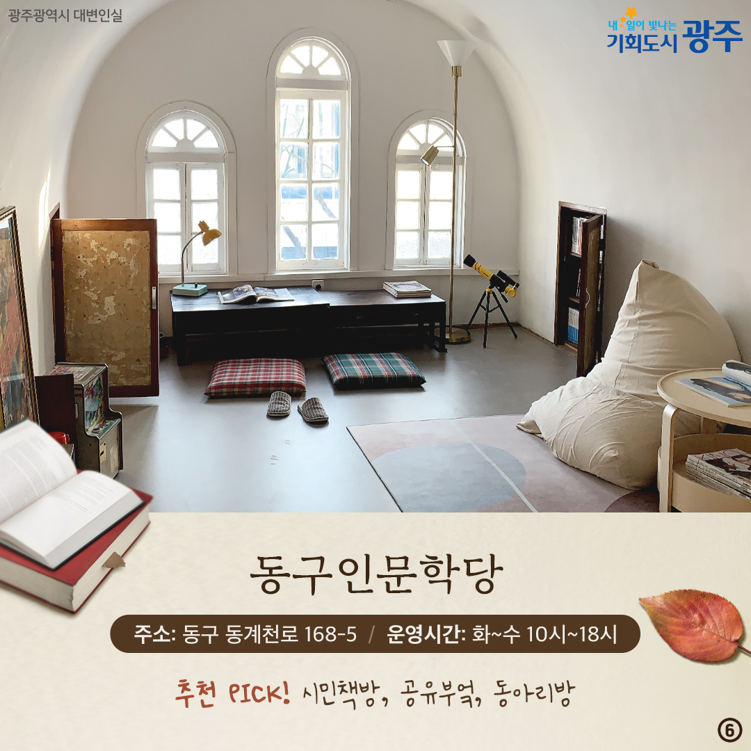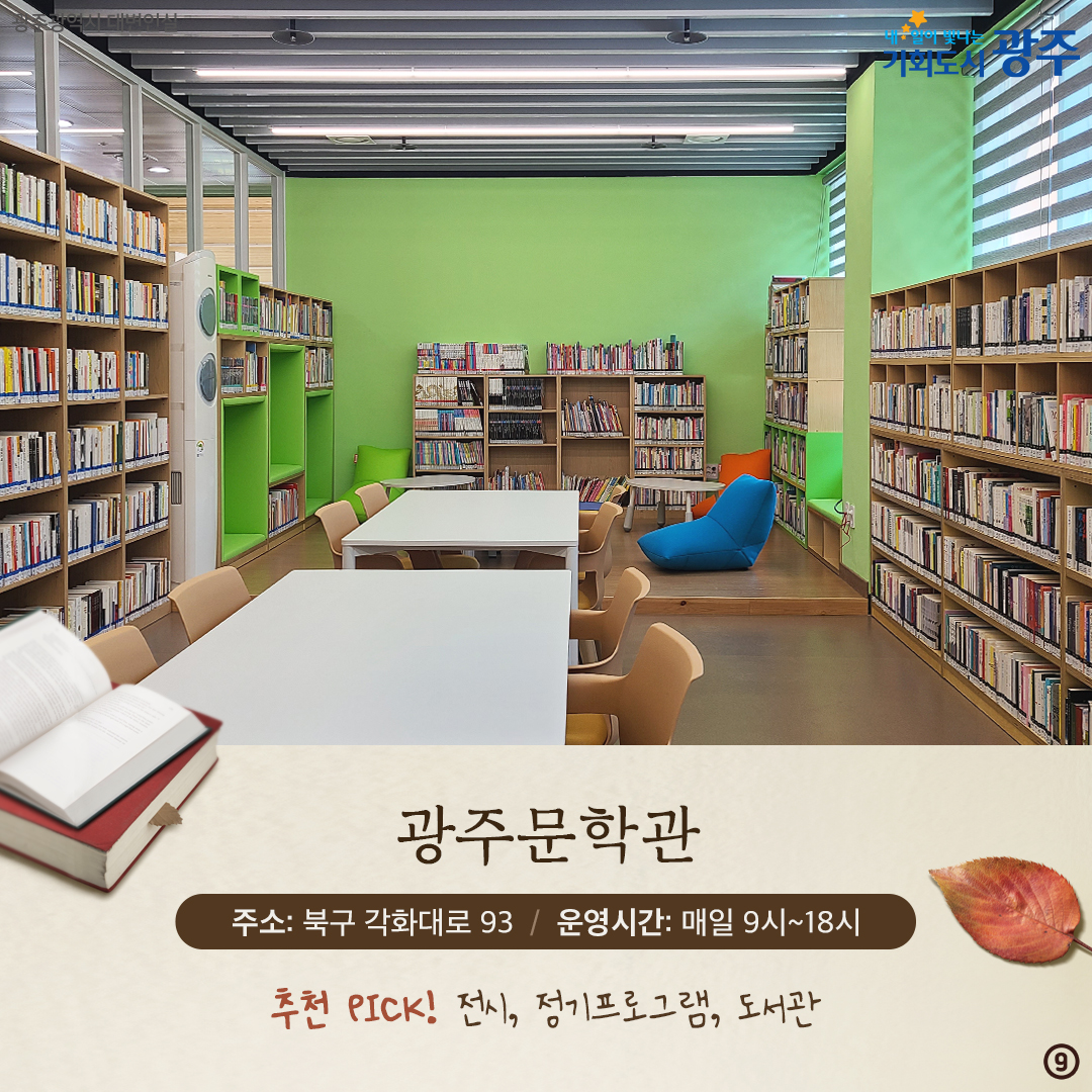 home 맘편한 내★일, 광주아이키움2.0 결혼·임신·출생 영유아 초·중·고 다양한 가족 일생활균형 커뮤니티 아동돌봄지원 소통방 나눔방 광주 아이키움 상담방 돌봄정보방 성폭력 피해 상담 및 사건지원 공지사항 이벤트소식 참여게시판 카드뉴스 동영상 아이키움 칼럼 성평등 육아웹툰 로고&캐릭터 [책 읽기 좋은 광주 추천 스팟] 독서의 계절, 광주는 지금 도서관 등록일 : 2024-10-23 17:39 작성자 : 운영자 조회수 : 384 첨부파일 표지-001.png 다운로드 [책 읽기 좋은 광주 추천 스팟] 독서의 계절, 광주는 지금 도서관[출처] [책 읽기 좋은 광주 추천 스팟] 독서의 계절, 광주는 지금 도서관|작성자 광주광역시 목록