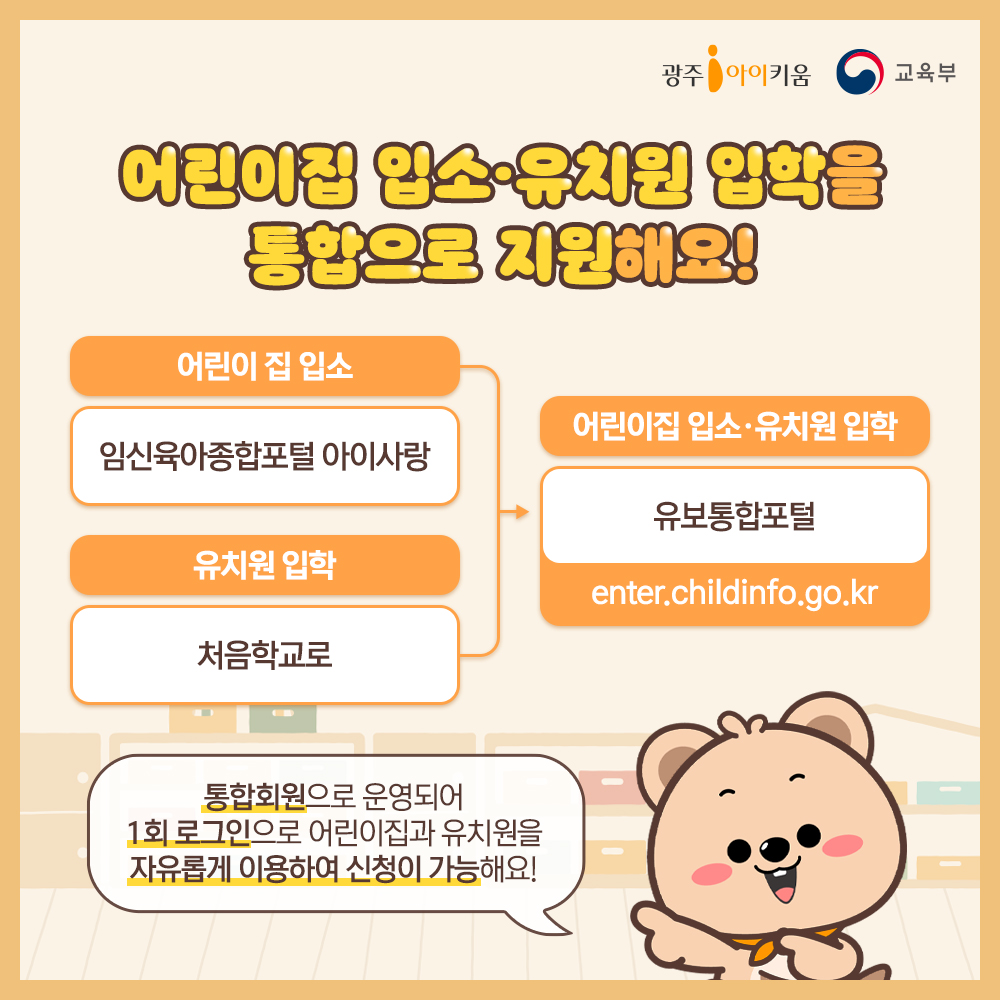 어린이집 입소와 유치원 입학 이제 한곳에서 쉽고 빠르게 신청하세요!