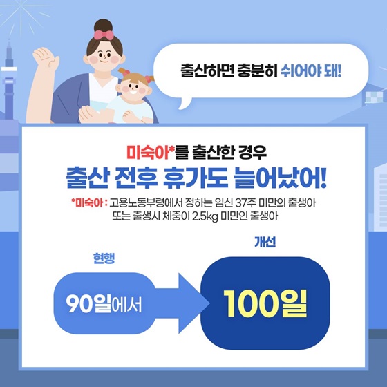 *미숙아 : 고용노동부령에서 정하는 임신 37주 미만의 출생아 또는 출생시 체중이 2.5kg 미만인 출생아