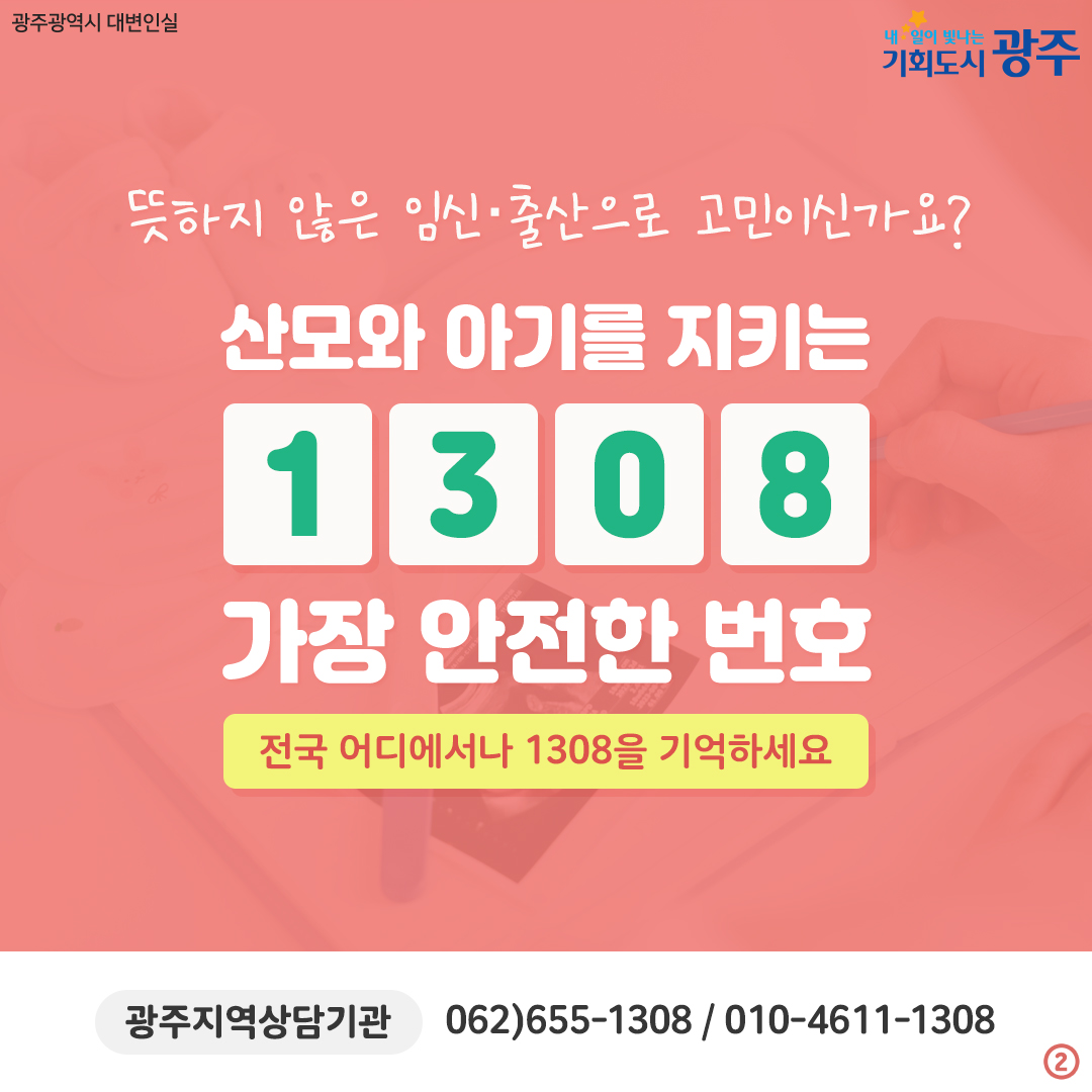 home 맘편한 내★일, 광주아이키움2.0 결혼·임신·출생 영유아 초·중·고 다양한 가족 일생활균형 커뮤니티 아동돌봄지원 소통방 나눔방 광주 아이키움 상담방 돌봄정보방 성폭력 피해 상담 및 사건지원 공지사항 이벤트소식 참여게시판 카드뉴스 동영상 아이키움 칼럼 성평등 육아웹툰 로고&캐릭터 임신 중 위기, 혼자 감당하지 마세요! 위기 임산부 상담 서비스가 함께합니다 등록일 : 2024-12-06 09:40 작성자 : 운영자 조회수 : 302 첨부파일 1.jpg 다운로드 출처 : 광주광역시청 목록