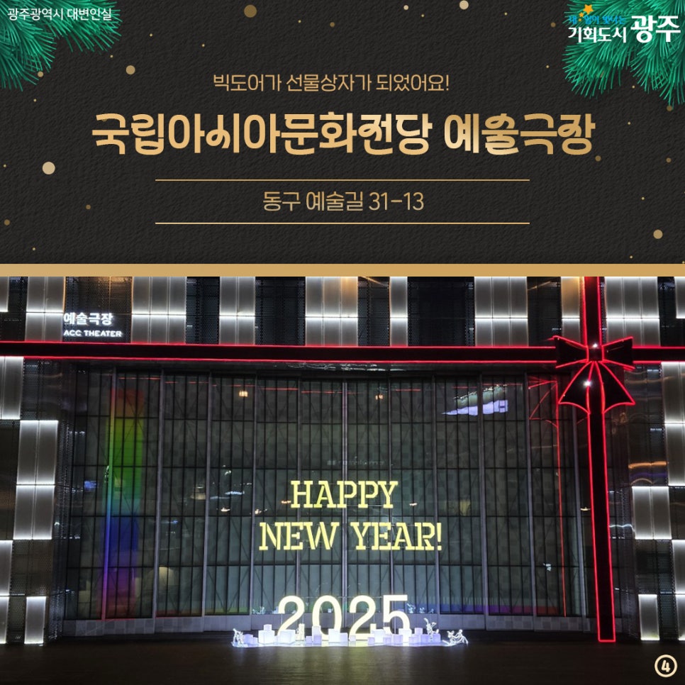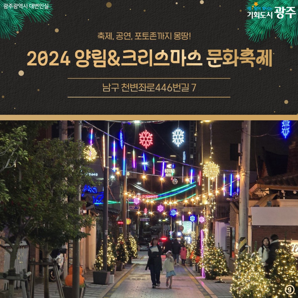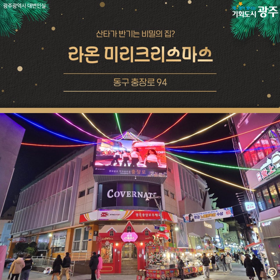 home 맘편한 내★일, 광주아이키움2.0 결혼·임신·출생 영유아 초·중·고 다양한 가족 일생활균형 커뮤니티 아동돌봄지원 소통방 나눔방 광주 아이키움 상담방 돌봄정보방 성폭력 피해 상담 및 사건지원 공지사항 이벤트소식 참여게시판 카드뉴스 동영상 아이키움 칼럼 성평등 육아웹툰 로고&캐릭터 Christmas 광주 크리스마스 명소 모음🎅 등록일 : 2024-12-18 08:38 작성자 : 운영자 조회수 : 310 첨부파일 000.png 다운로드 [출처 : 광주광역시] 목록