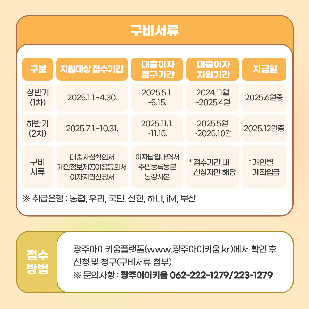 home 맘편한 내★일, 광주아이키움2.0 결혼·임신·출생 영유아 초·중·고 다양한 가족 일생활균형 커뮤니티 아동돌봄지원 소통방 나눔방 광주 아이키움 상담방 돌봄정보방 성폭력 피해 상담 및 사건지원 공지사항 이벤트소식 참여게시판 카드뉴스 동영상 아이키움 칼럼 성평등 육아웹툰 로고&캐릭터 2025년 신혼부부 전세자금 대출이자 지원 안내 등록일 : 2025-01-10 09:34 작성자 : 운영자 조회수 : 216 첨부파일 1-1.jpg 다운로드 목록