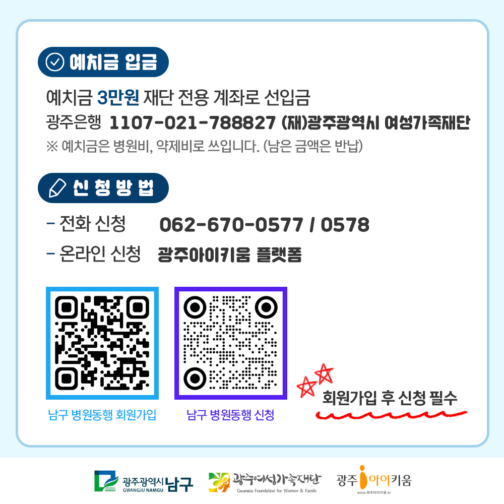 home 맘편한 내★일, 광주아이키움2.0 결혼·임신·출생 영유아 초·중·고 다양한 가족 일생활균형 커뮤니티 아동돌봄지원 소통방 나눔방 광주 아이키움 상담방 돌봄정보방 성폭력 피해 상담 및 사건지원 공지사항 이벤트소식 참여게시판 카드뉴스 동영상 아이키움 칼럼 성평등 육아웹툰 로고&캐릭터 남구 아픈아이 긴급병원동행 서비스 등록일 : 2025-02-05 16:57 작성자 : 운영자 조회수 : 183 첨부파일 남구1_1.jpg 다운로드 목록