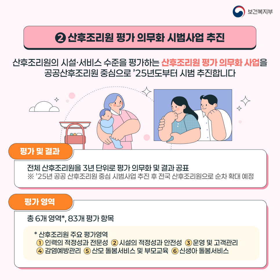 ② 산후조리원 평가 의무화 시범사업 추진
