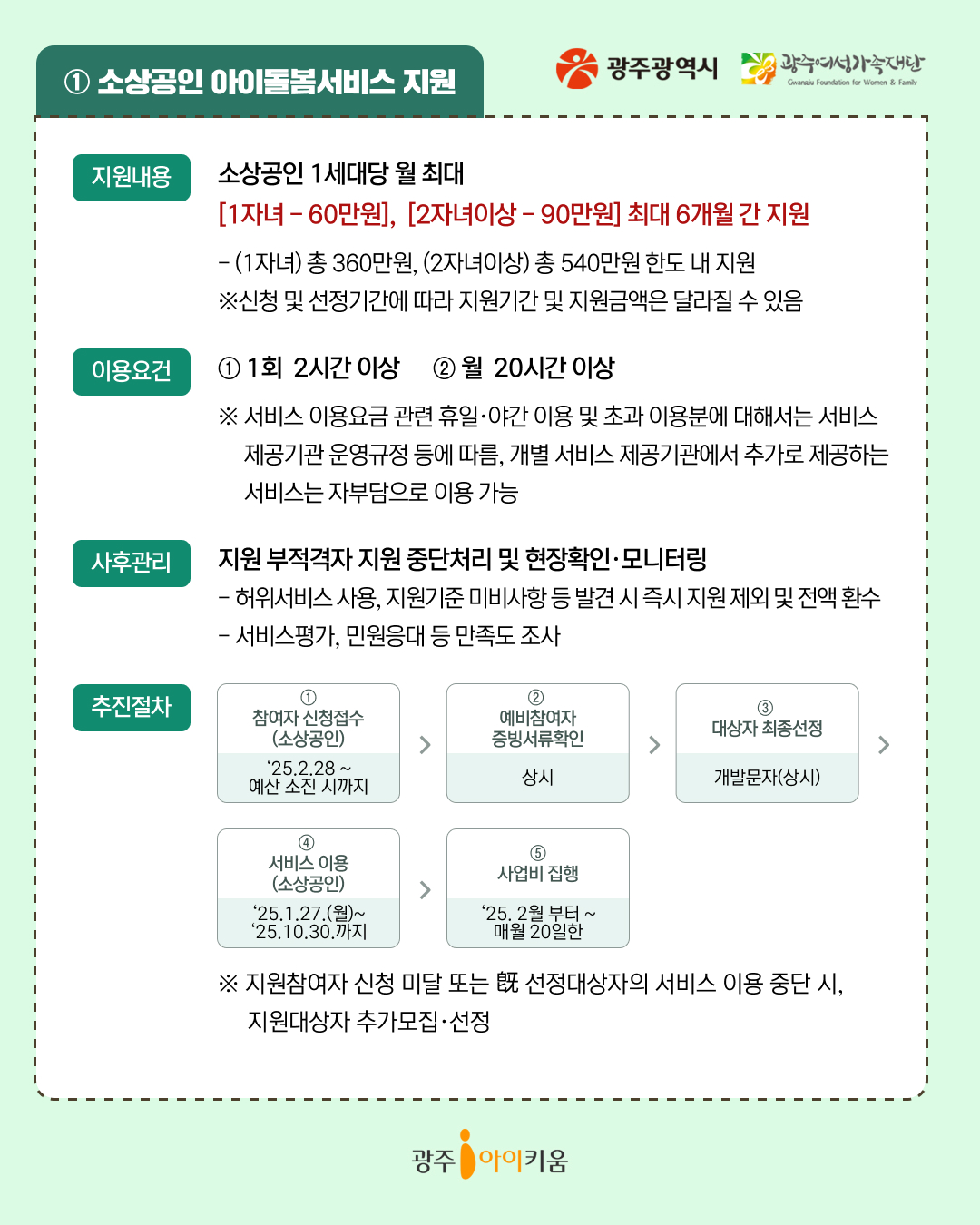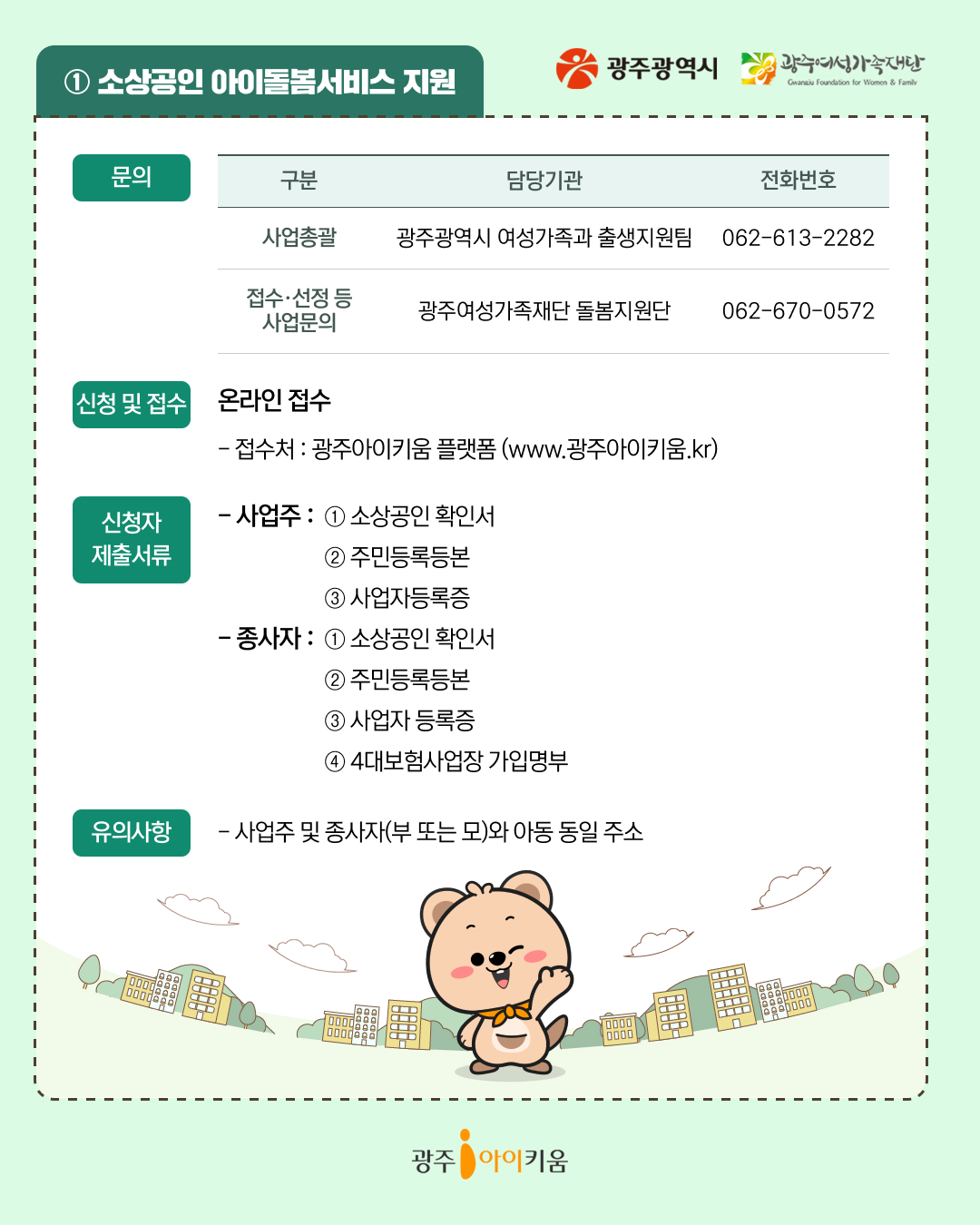 home 맘편한 내★일, 광주아이키움2.0 결혼·임신·출생 영유아 초·중·고 다양한 가족 일생활균형 커뮤니티 아동돌봄지원 소통방 나눔방 광주 아이키움 상담방 돌봄정보방 성폭력 피해 상담 및 사건지원 공지사항 이벤트소식 참여게시판 카드뉴스 동영상 아이키움 칼럼 성평등 육아웹툰 로고&캐릭터 ✨2025년 소상공인 육아응원패키지✨ 등록일 : 2025-03-14 10:49 작성자 : 운영자 조회수 : 284 첨부파일 1page.jpg 다운로드 목록