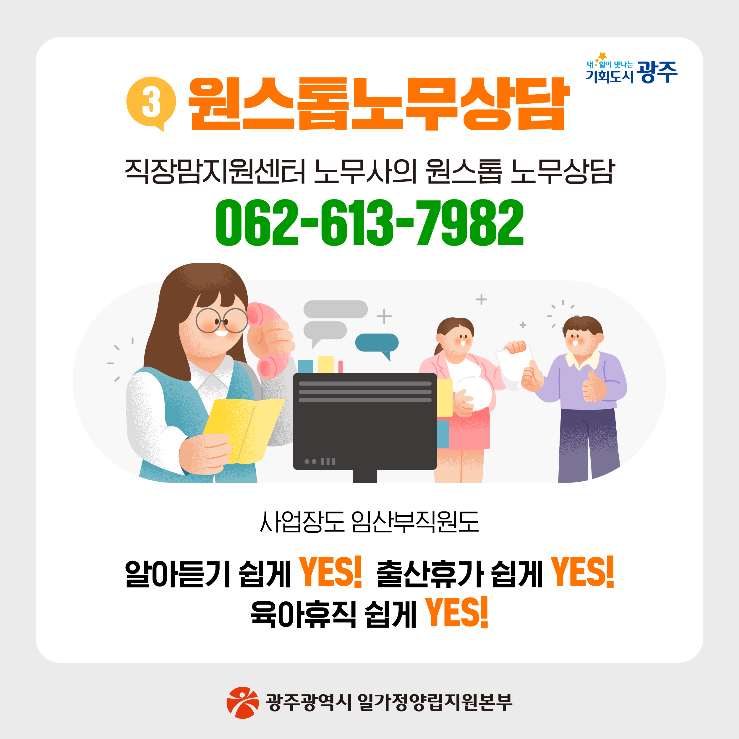 home 맘편한 내★일, 광주아이키움2.0 결혼·임신·출생 영유아 초·중·고 다양한 가족 일생활균형 커뮤니티 아동돌봄지원 소통방 나눔방 광주 아이키움 상담방 돌봄정보방 성폭력 피해 상담 및 사건지원 공지사항 이벤트소식 참여게시판 카드뉴스 동영상 아이키움 칼럼 성평등 육아웹툰 로고&캐릭터 임산부 직장맘을 위한 '일가정양립 지원제도' 등록일 : 2025-03-24 11:16 작성자 : 운영자 조회수 : 121 첨부파일 KakaoTalk_20250321_091618737.jpg 다운로드 목록