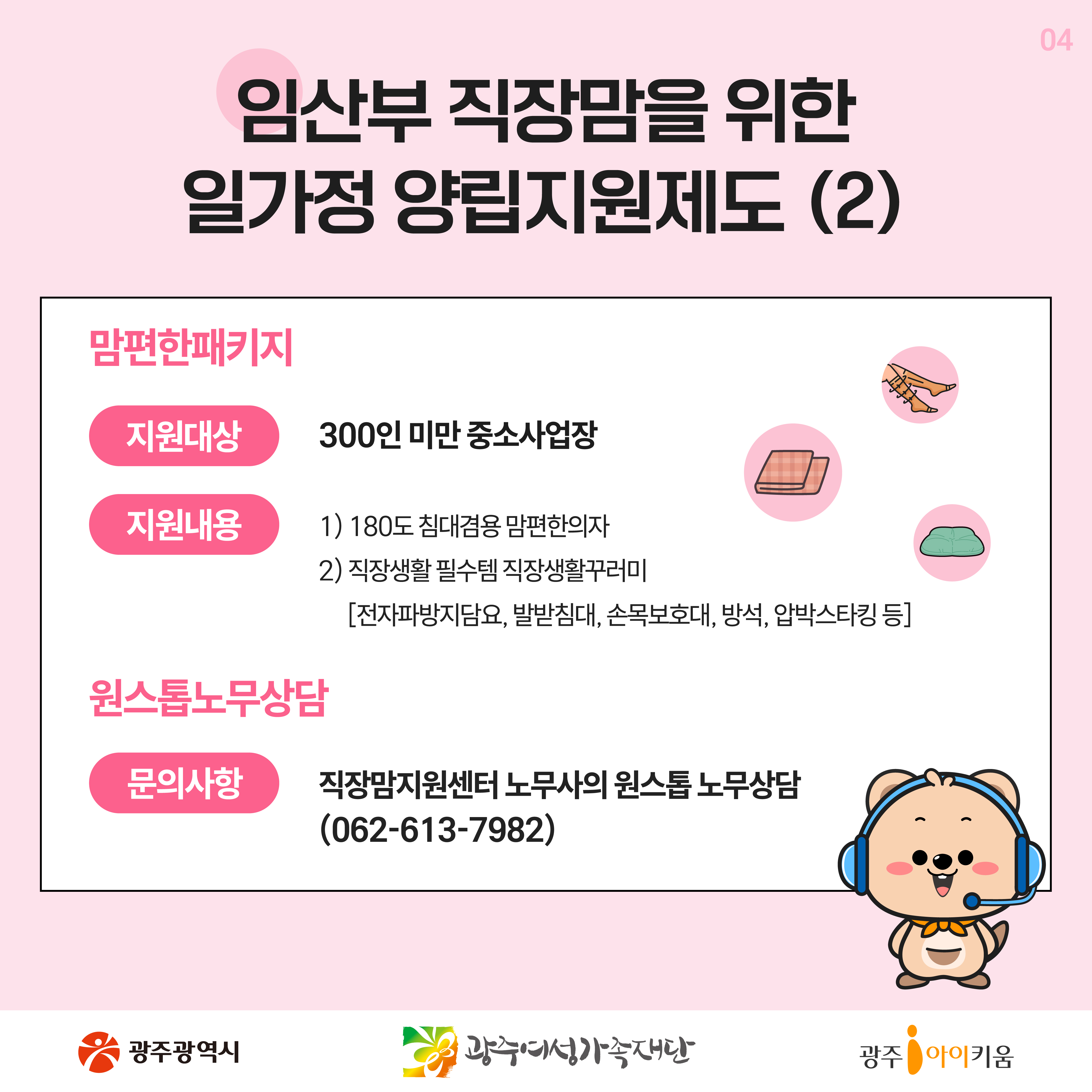 home 맘편한 내★일, 광주아이키움2.0 결혼·임신·출생 영유아 초·중·고 다양한 가족 일생활균형 커뮤니티 아동돌봄지원 소통방 나눔방 광주 아이키움 상담방 돌봄정보방 성폭력 피해 상담 및 사건지원 공지사항 이벤트소식 참여게시판 카드뉴스 동영상 아이키움 칼럼 성평등 육아웹툰 로고&캐릭터 [돌봄같이 64호] 아는 만큼 보이는 틈새 정책들 등록일 : 2025-03-27 15:27 작성자 : 운영자 조회수 : 503 첨부파일 KakaoTalk_20250325_132941081.jpg 다운로드 목록