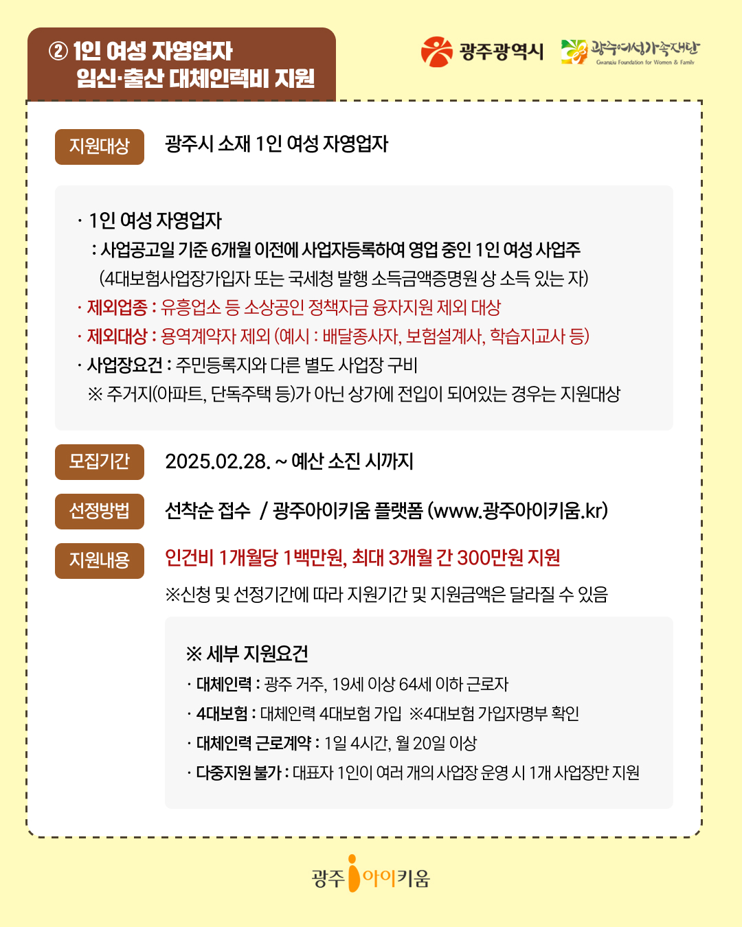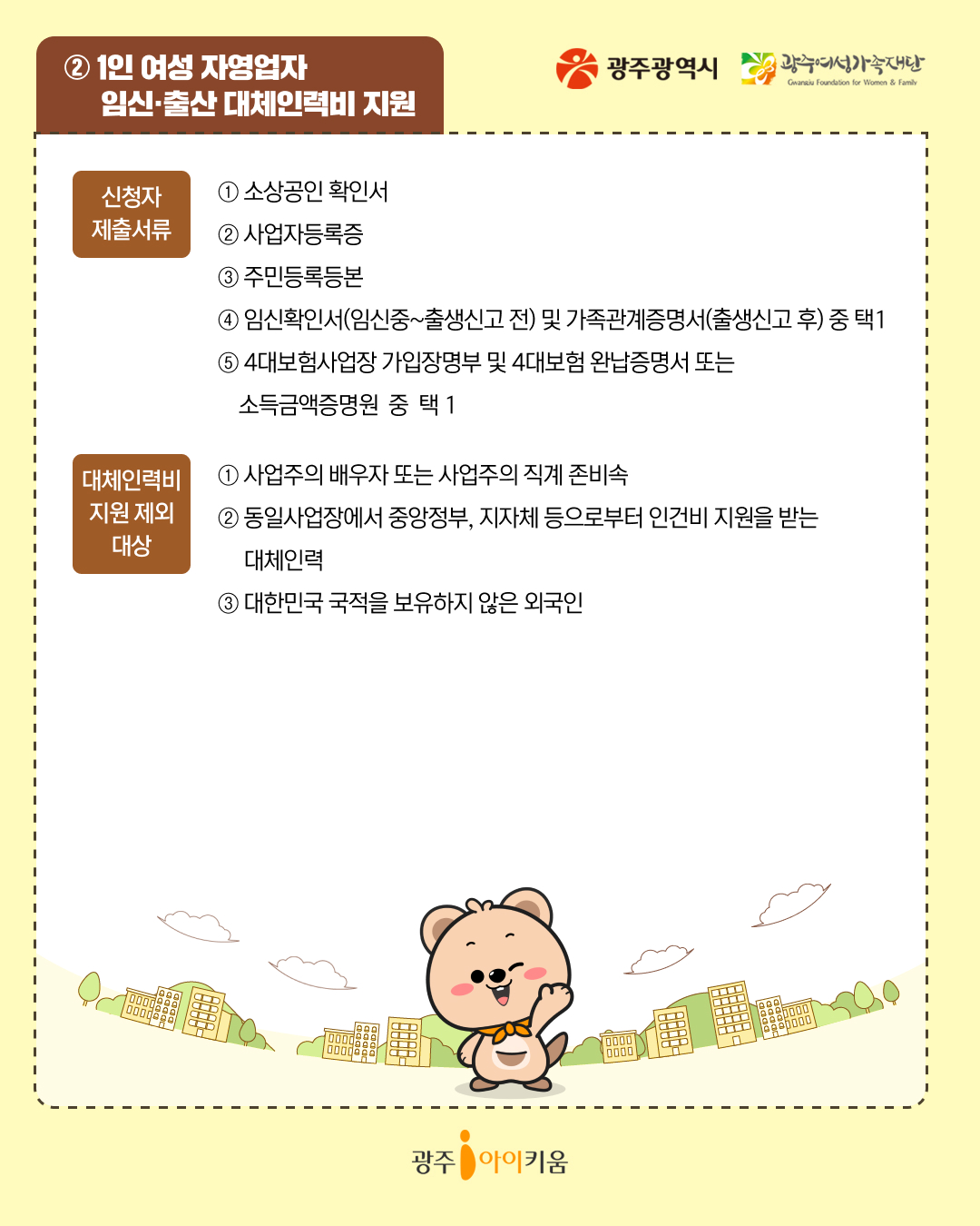 home 맘편한 내★일, 광주아이키움2.0 결혼·임신·출생 영유아 초·중·고 다양한 가족 일생활균형 커뮤니티 아동돌봄지원 소통방 나눔방 광주 아이키움 상담방 돌봄정보방 성폭력 피해 상담 및 사건지원 공지사항 이벤트소식 참여게시판 카드뉴스 동영상 아이키움 칼럼 성평등 육아웹툰 로고&캐릭터 [지원정책] 소상공인 육아응원패키지✨ 등록일 : 2025-05-13 14:10 작성자 : 운영자 조회수 : 200 첨부파일 page1.jpg 다운로드 목록