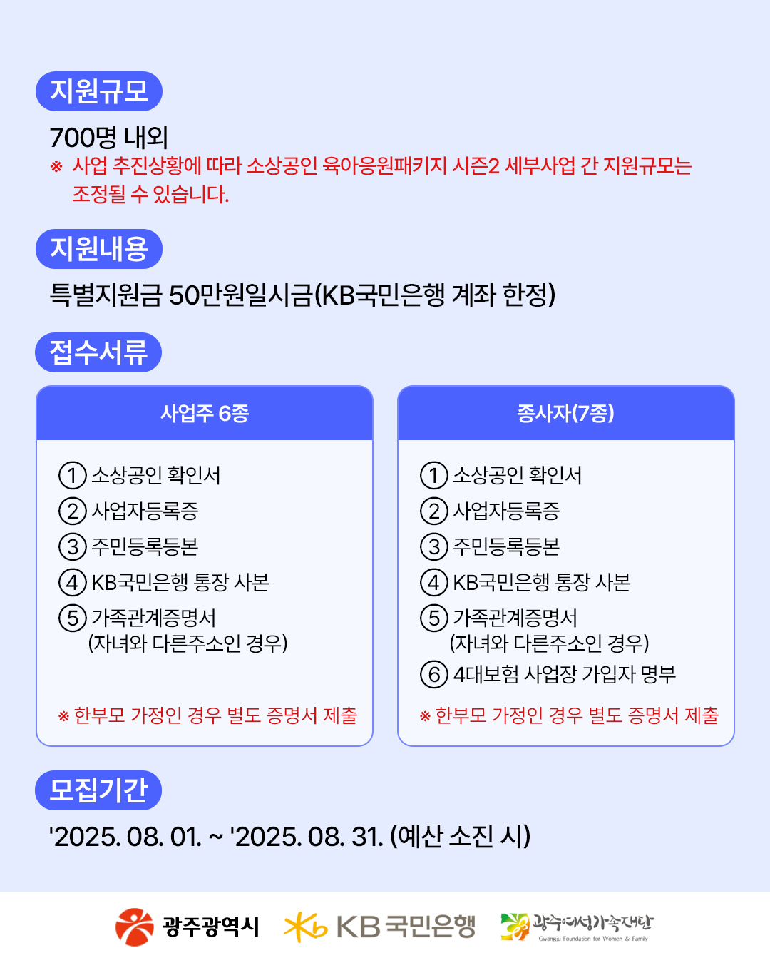 home 맘편한 내★일, 광주아이키움2.0 결혼·임신·출생 영유아 초·중·고 다양한 가족 일생활균형 커뮤니티 아동돌봄지원 소통방 나눔방 광주 아이키움 상담방 돌봄정보방 성폭력 피해 상담 및 사건지원 공지사항 이벤트소식 참여게시판 카드뉴스 동영상 아이키움 칼럼 성평등 육아웹툰 로고&캐릭터 소상공인 출생 특별지원금 신청 안내 등록일 : 2025-07-22 14:24 작성자 : 운영자 조회수 : 169 첨부파일 1.jpg 다운로드 목록