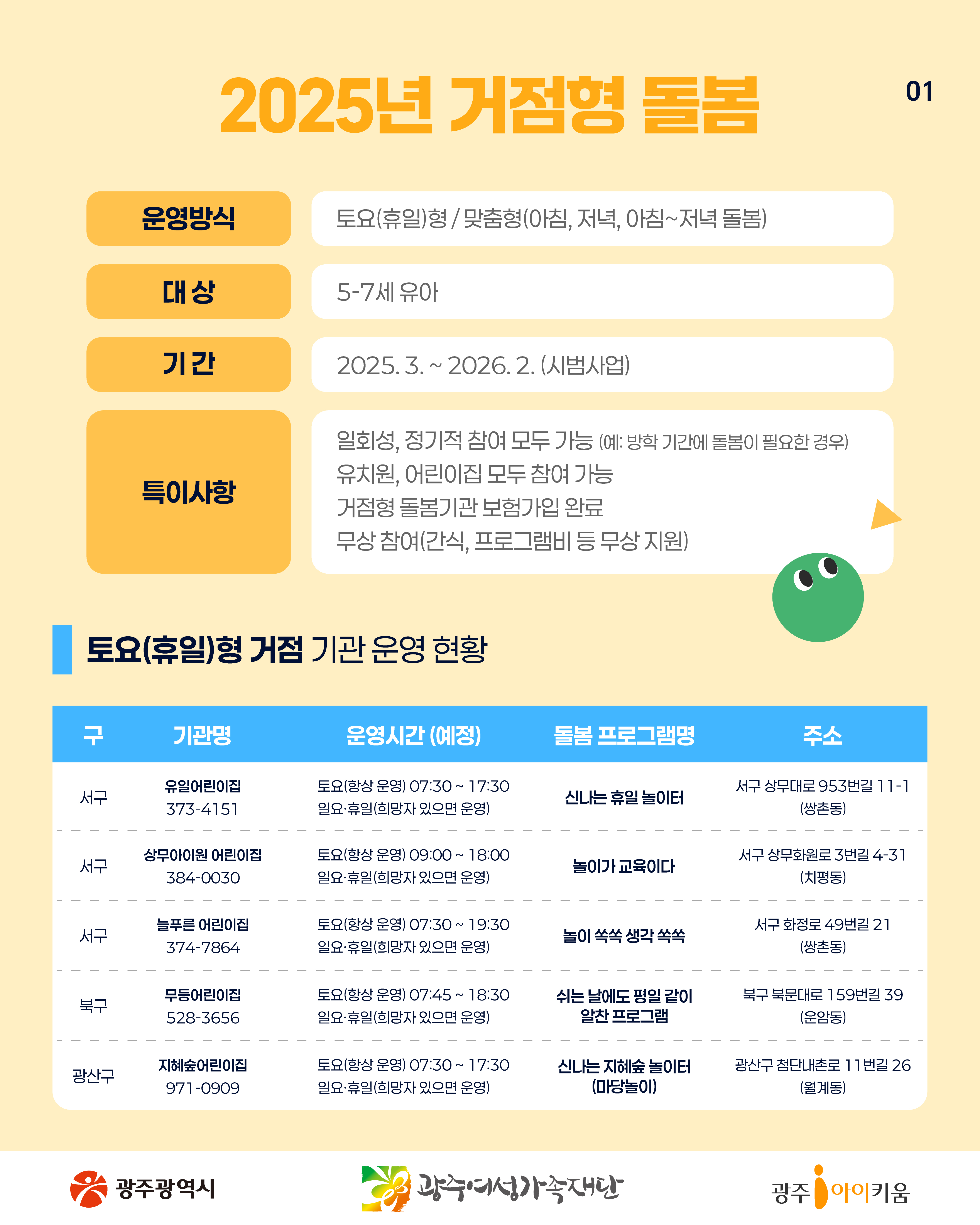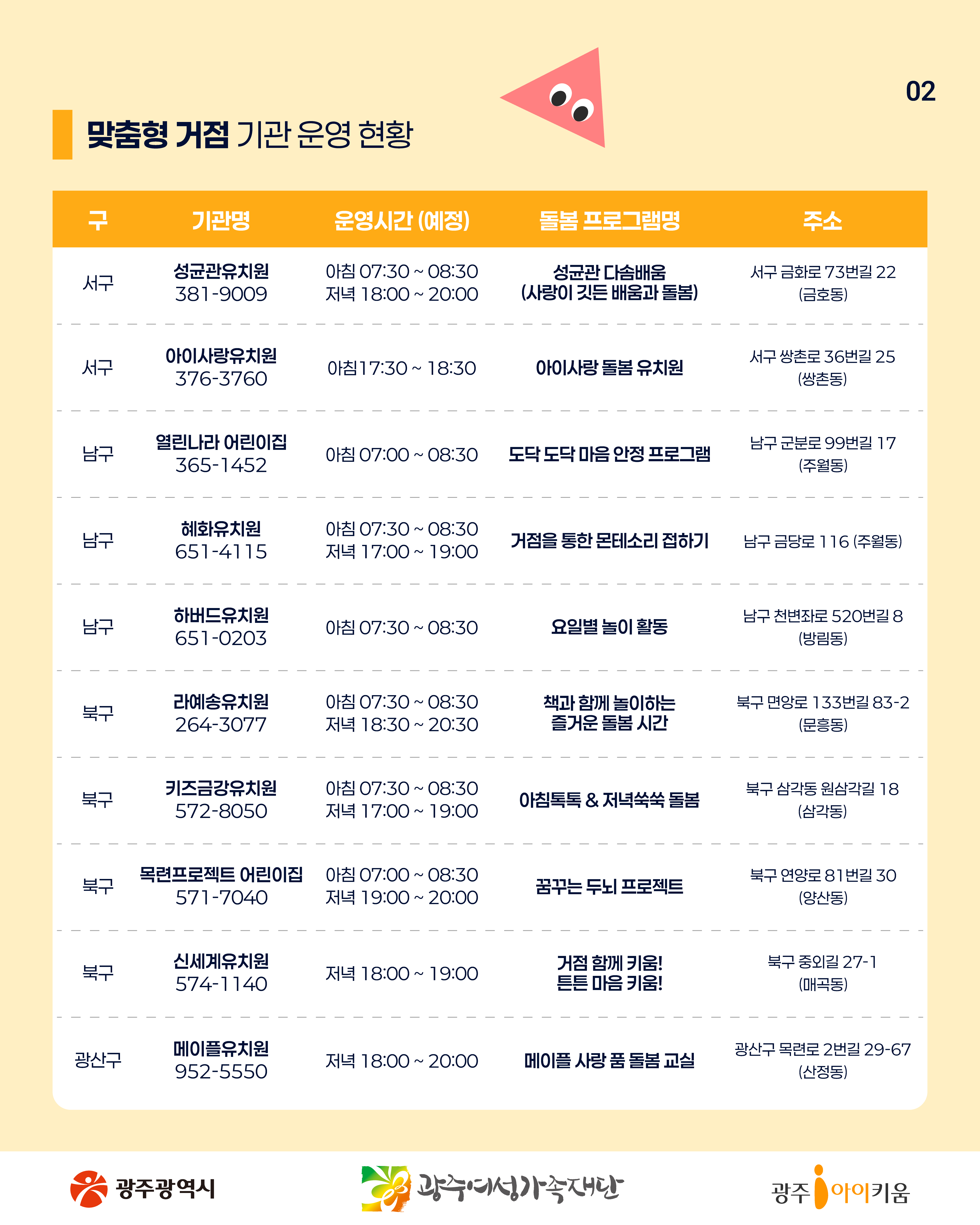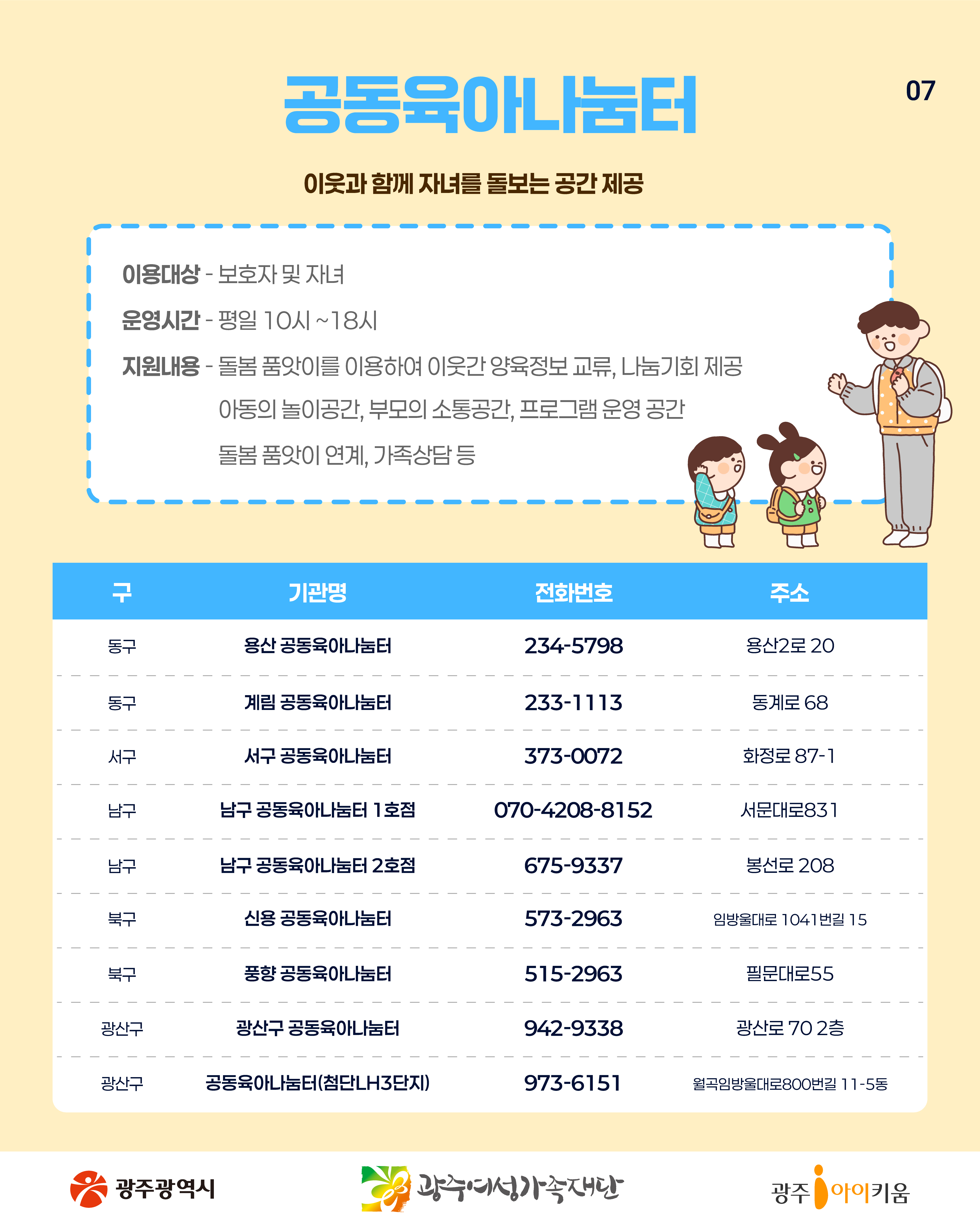 home 맘편한 내★일, 광주아이키움2.0 결혼·임신·출생 영유아 초·중·고 다양한 가족 일생활균형 커뮤니티 아동돌봄지원 소통방 나눔방 광주 아이키움 상담방 돌봄정보방 성폭력 피해 상담 및 사건지원 공지사항 이벤트소식 참여게시판 카드뉴스 동영상 아이키움 칼럼 성평등 육아웹툰 로고&캐릭터 돌봄같이 68호- 영유아를 위한 틈새 돌봄기관 등록일 : 2025-07-28 14:27 작성자 : 운영자 조회수 : 103 첨부파일 KakaoTalk_20250728_134208526_09.jpg 다운로드 목록
