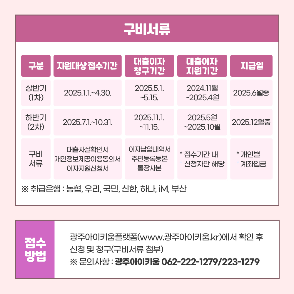 기타 문의사항은 광주아이키움 (062-222-1279/223-1279)으로 연락주세요.