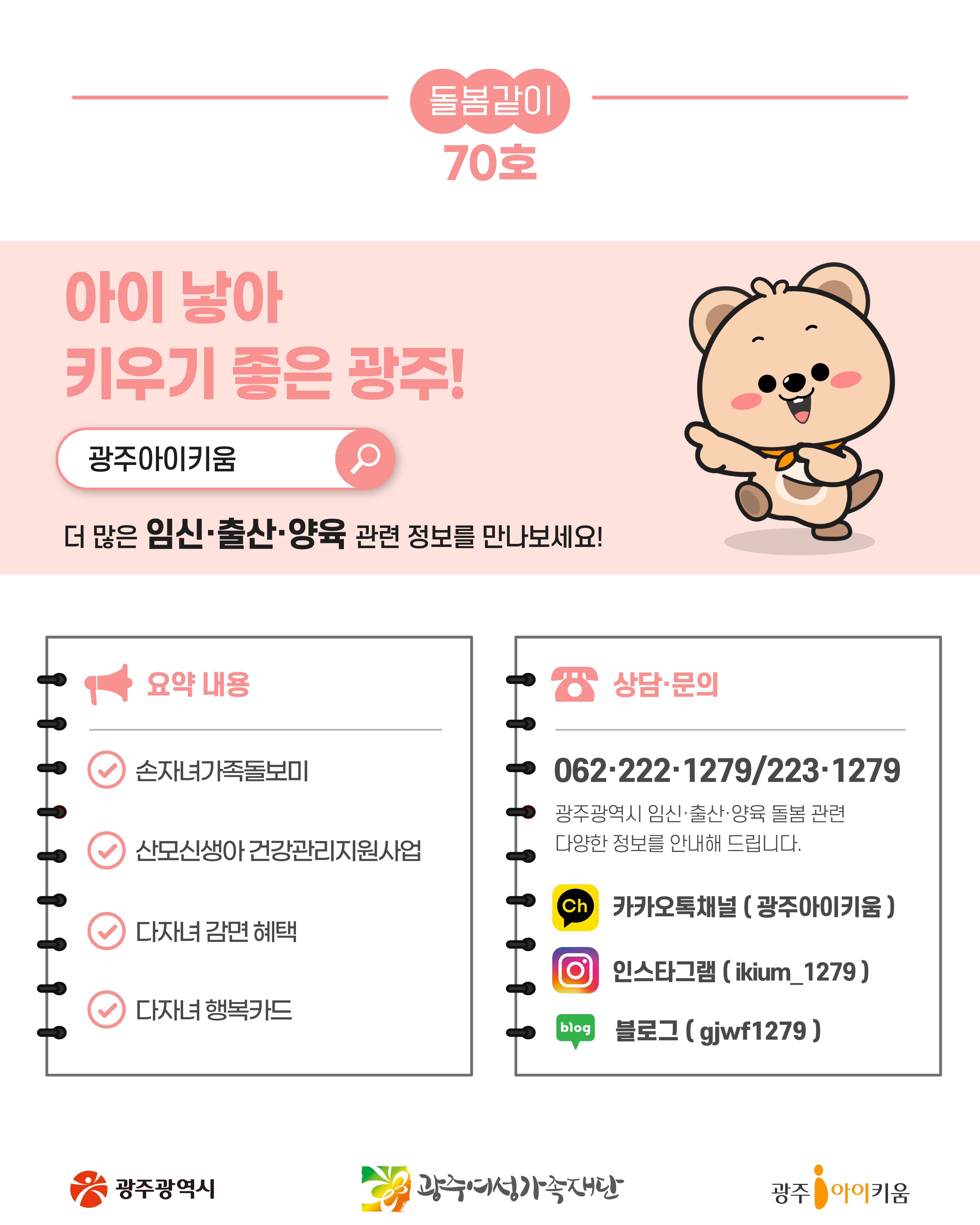 home 맘편한 내★일, 광주아이키움2.0 결혼·임신·출생 영유아 초·중·고 다양한 가족 일생활균형 커뮤니티 아동돌봄지원 소통방 나눔방 광주 아이키움 상담방 돌봄정보방 성폭력 피해 상담 및 사건지원 공지사항 이벤트소식 참여게시판 카드뉴스 동영상 아이키움 칼럼 성평등 육아웹툰 로고&캐릭터 [돌봄같이 70호] 두자녀도 다자녀 등록일 : 2025-09-03 14:26 작성자 : 운영자 조회수 : 380 첨부파일 KakaoTalk_20250825_144341166_09.jpg 다운로드 목록