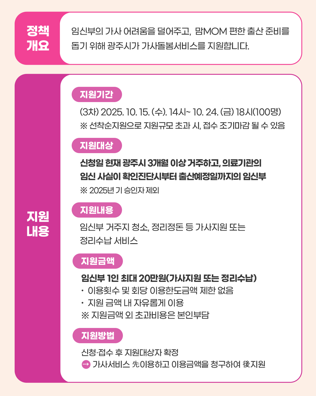 home 맘편한 내★일, 광주아이키움2.0 결혼·임신·출생 영유아 초·중·고 다양한 가족 일생활균형 커뮤니티 아동돌봄지원 소통방 나눔방 광주 아이키움 상담방 돌봄정보방 성폭력 피해 상담 및 사건지원 공지사항 이벤트소식 참여게시판 카드뉴스 동영상 아이키움 칼럼 성평등 육아웹툰 로고&캐릭터 2025 임신부가사돌봄서비스 3차 신청 등록일 : 2025-10-14 09:32 작성자 : 운영자 조회수 : 444 첨부파일 KakaoTalk_20251013_175035116.jpg 다운로드 목록