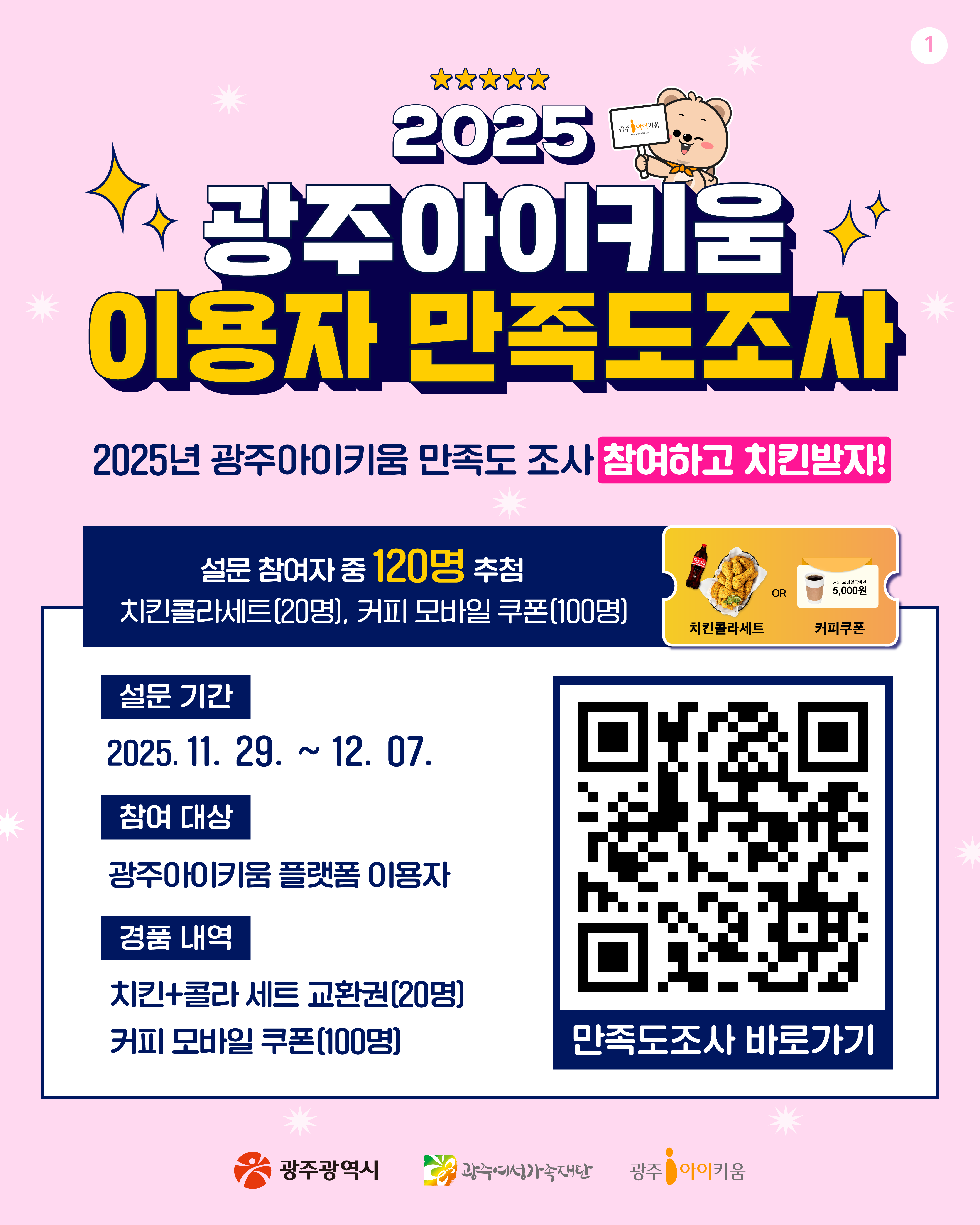 2025 광주아이키움 이용자 만족도 조사 EVENT 설문 참여하고 선물 받아가세요!