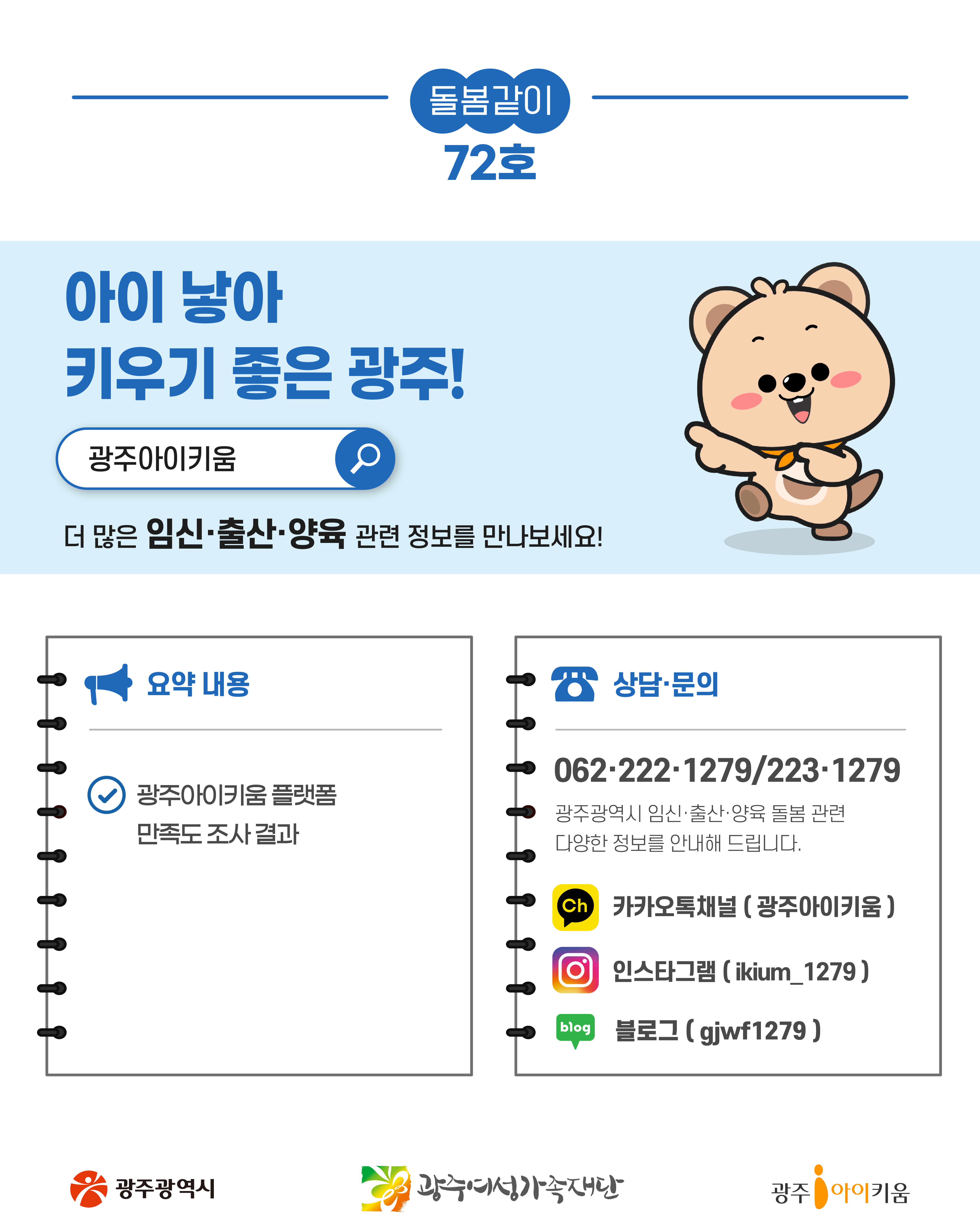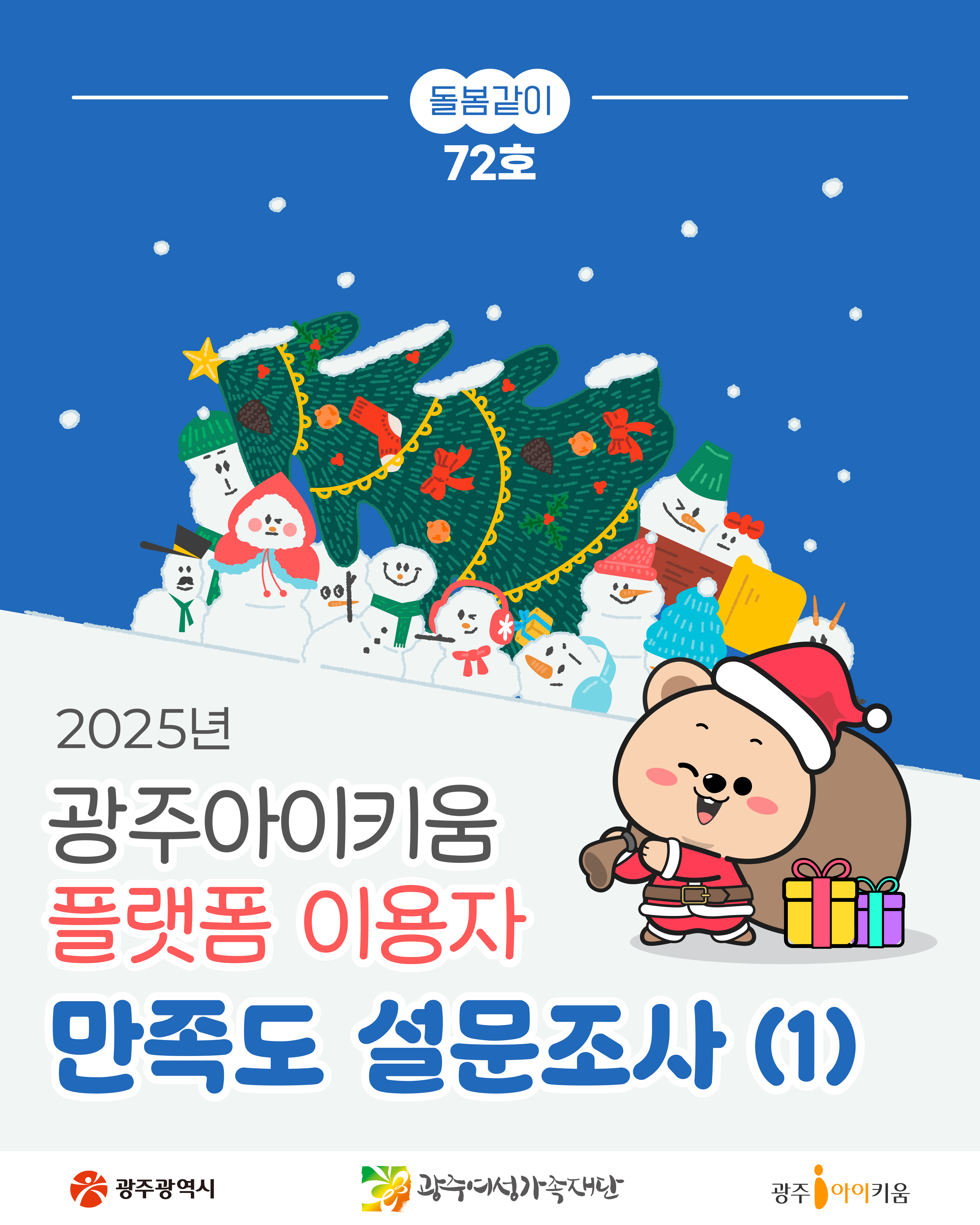 home 맘편한 내★일, 광주아이키움2.0 결혼·임신·출생 영유아 초·중·고 다양한 가족 일생활균형 커뮤니티 아동돌봄지원 소통방 나눔방 광주 아이키움 상담방 돌봄정보방 성폭력 피해 상담 및 사건지원 공지사항 이벤트소식 참여게시판 카드뉴스 동영상 아이키움 칼럼 성평등 육아웹툰 로고&캐릭터 돌봄같이 72호💌광주아이키움플랫폼 이용자 만족도조사(1) 등록일 : 2025-12-16 11:12 작성자 : 운영자 조회수 : 194 첨부파일 아이키움만족도조사1 (8).jpg 다운로드 목록