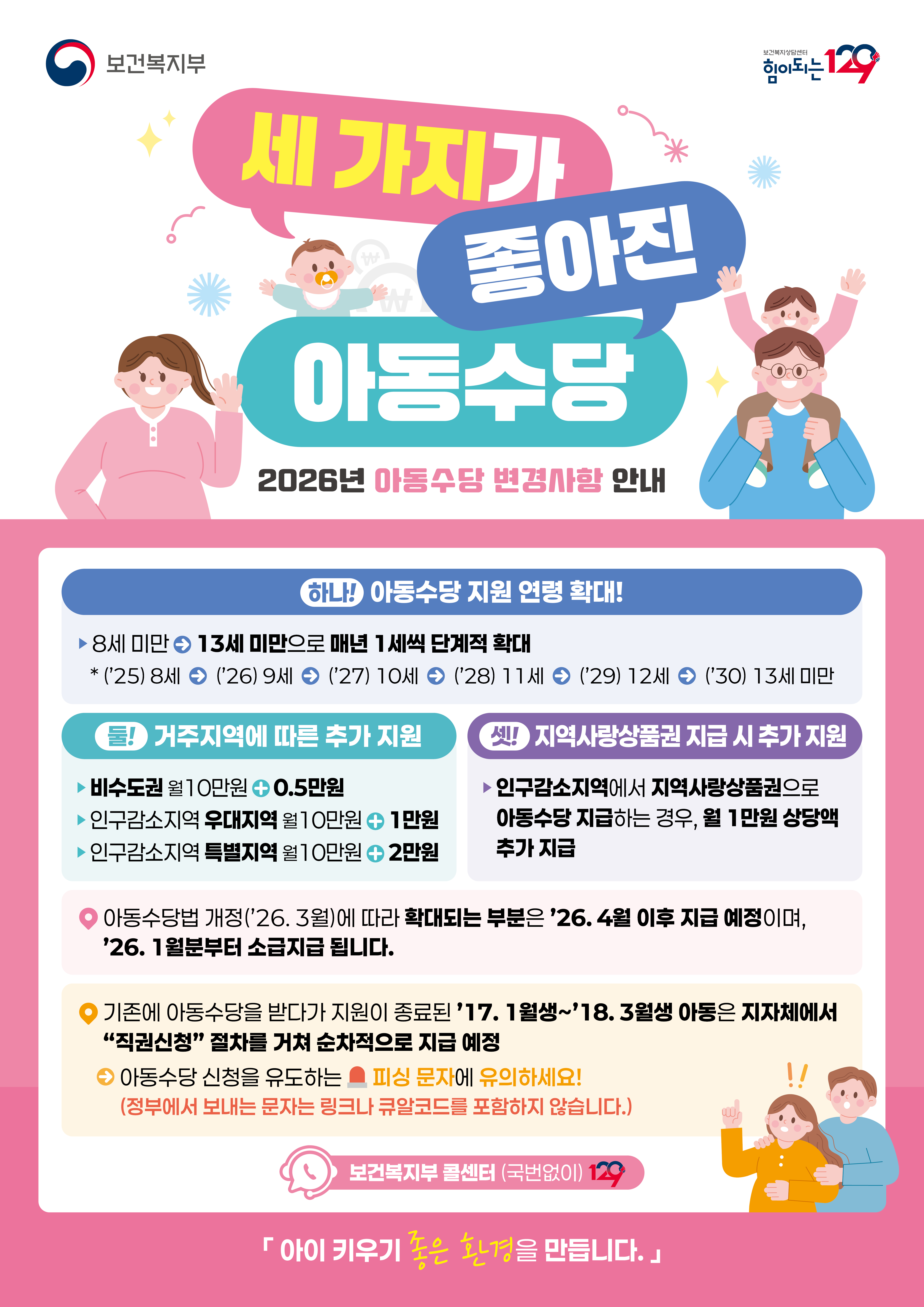 home 맘편한 내★일, 광주아이키움2.0 결혼·임신·출생 영유아 초·중·고 다양한 가족 일생활균형 커뮤니티 아동돌봄지원 소통방 나눔방 광주 아이키움 상담방 돌봄정보방 성폭력 피해 지원 안내 공지사항 이벤트소식 참여게시판 카드뉴스 동영상 아이키움 칼럼 성평등 육아웹툰 로고&캐릭터 2026년 세 가지가 좋아진 아동수당 등록일 : 2026-03-26 16:22 작성자 : 운영자 조회수 : 35 첨부파일 108135.png 다운로드 출처:광주광역시 목록