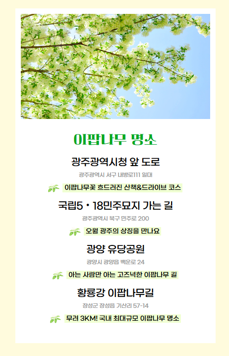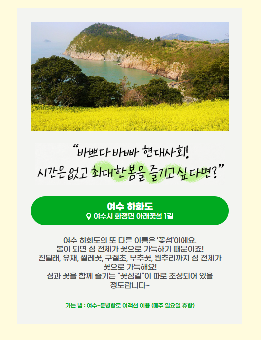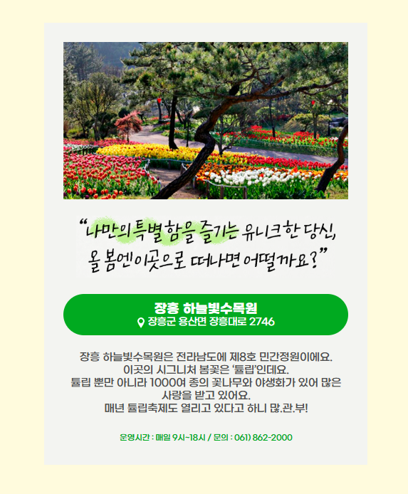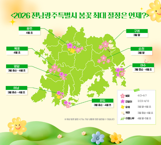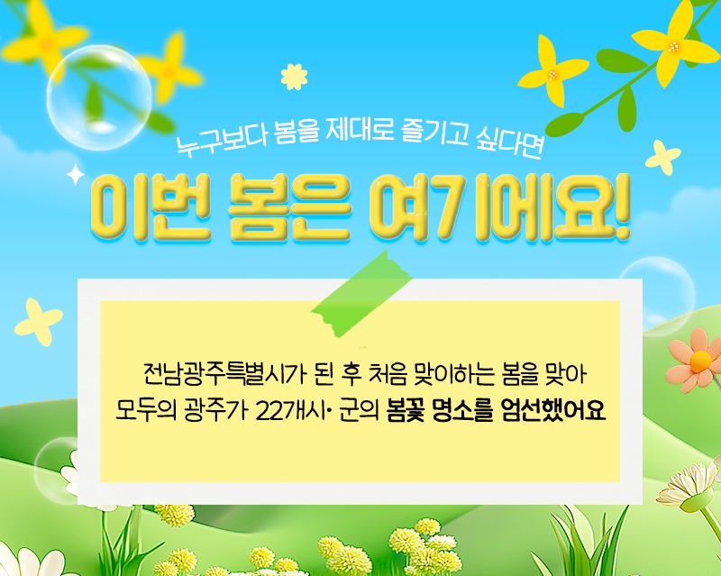 home 맘편한 내★일, 광주아이키움2.0 결혼·임신·출생 영유아 초·중·고 다양한 가족 일생활균형 커뮤니티 아동돌봄지원 소통방 나눔방 광주 아이키움 상담방 돌봄정보방 성폭력 피해 지원 안내 공지사항 이벤트소식 참여게시판 카드뉴스 동영상 아이키움 칼럼 성평등 육아웹툰 로고&캐릭터 설렘으로 떠나는 향긋한 봄꽃여행 등록일 : 2026-03-27 15:54 작성자 : 운영자 조회수 : 21 첨부파일 KakaoTalk_20260327_171216232.png 다운로드 봄바람은 여기서만 나기로 해 누구보다 봄을 빠르게 만나고 싶은 당신에게 출처: 모두의 광주 목록