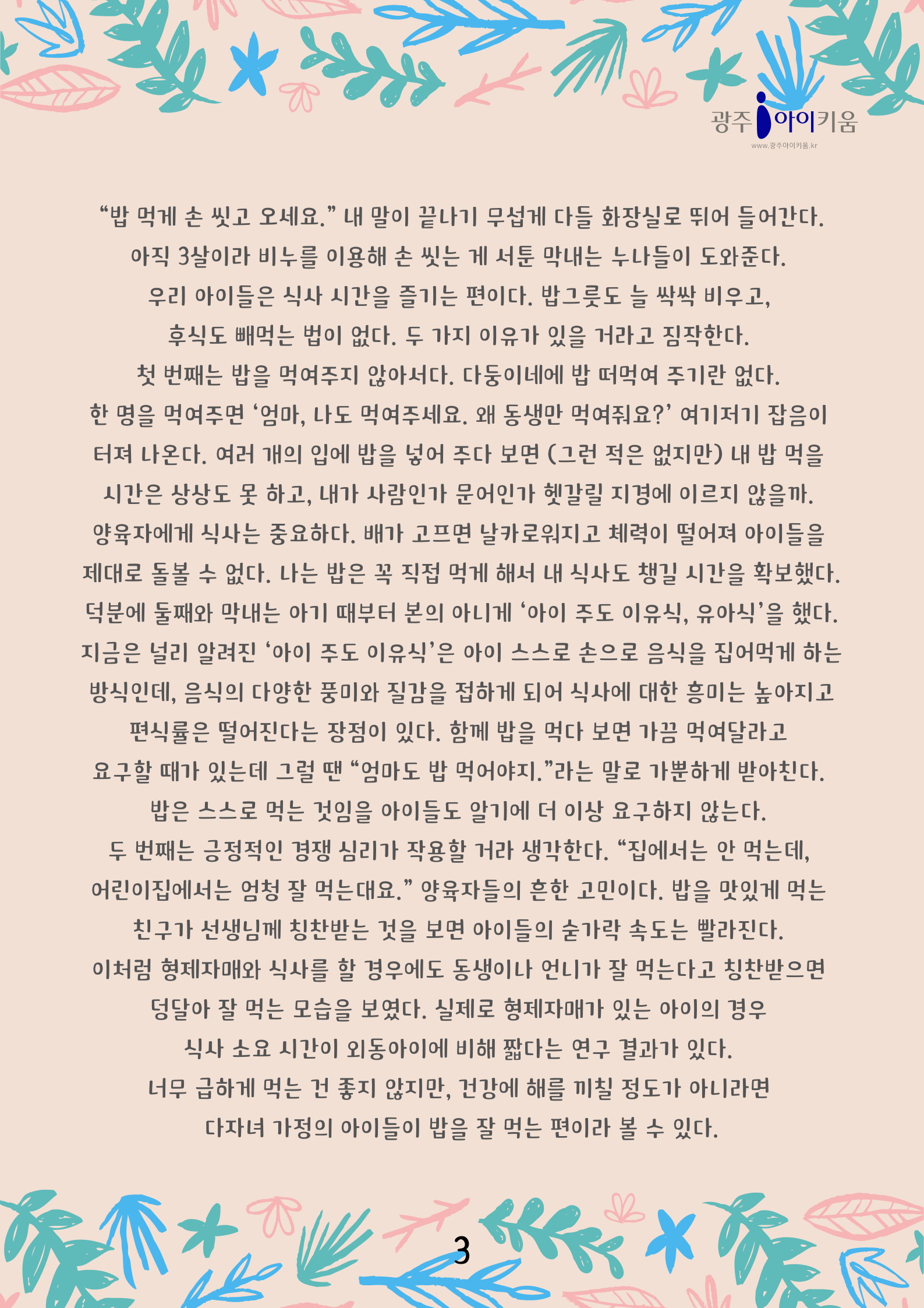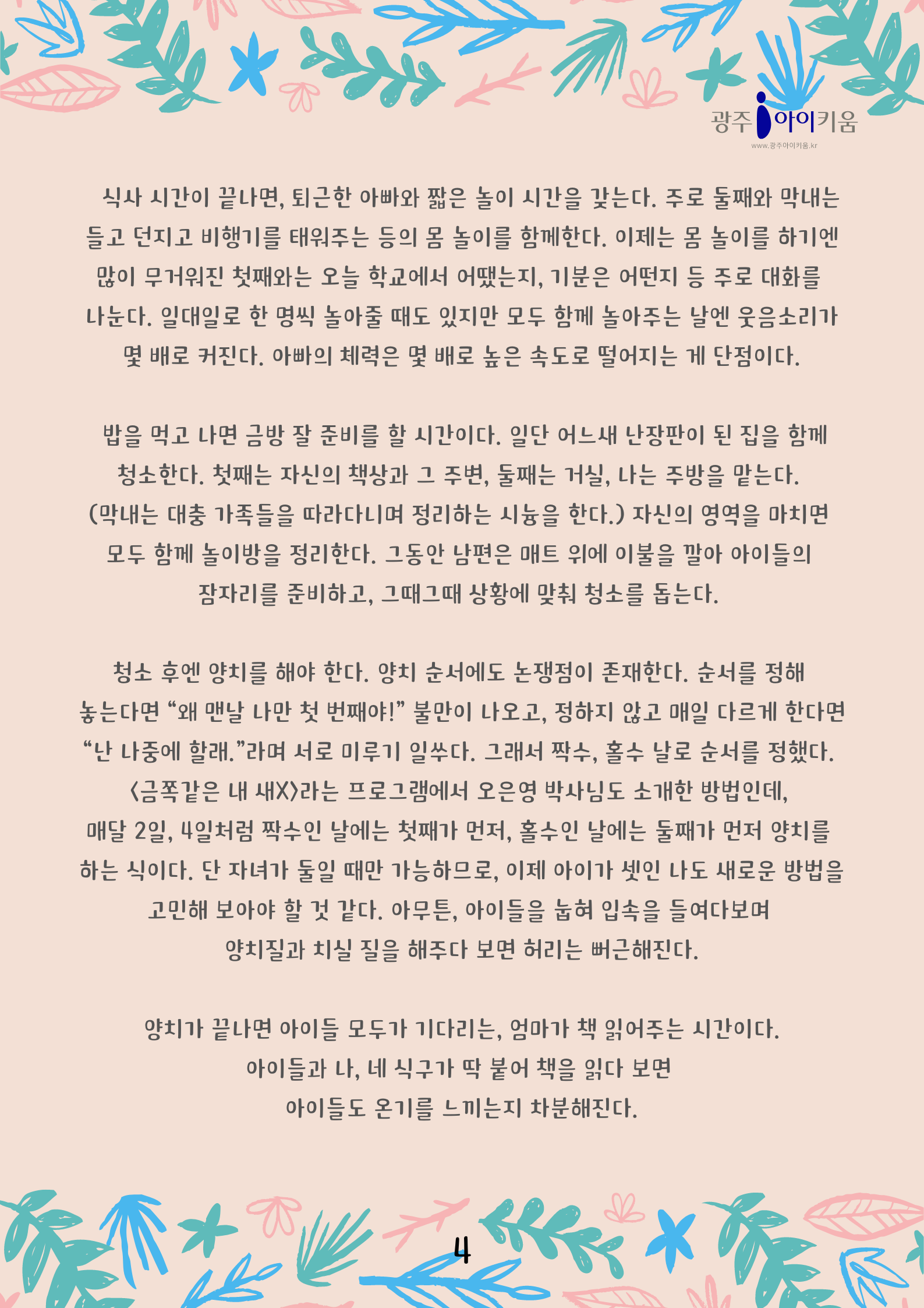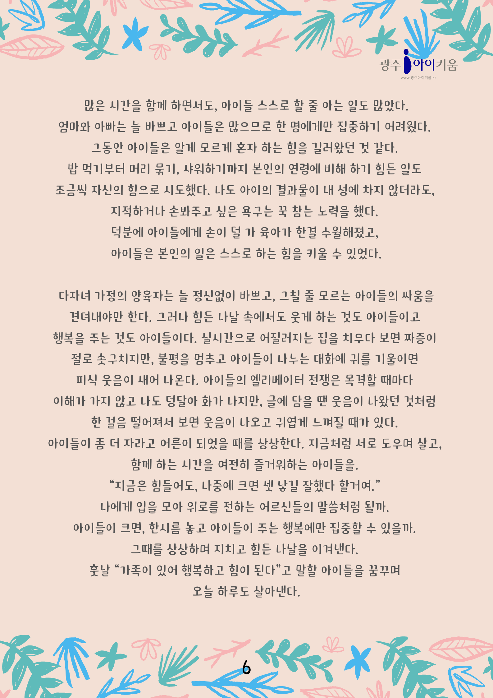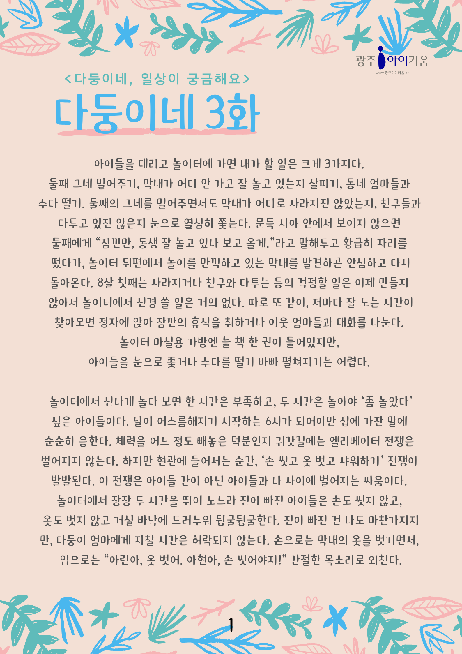 home 맘편한 내★일, 광주아이키움2.0 결혼·임신·출생 영유아 초·중·고 다양한 가족 일생활균형 커뮤니티 아동돌봄지원 소통방 나눔방 광주 아이키움 상담방 돌봄정보방 성폭력 피해 상담 및 사건지원 공지사항 이벤트소식 참여게시판 카드뉴스 동영상 아이키움 칼럼 성평등 육아웹툰 로고&캐릭터 [다자녀육아] 3화- 일상이 궁금해요2 등록일 : 2023-03-27 09:30 카테고리 : 카테고리 없음 작성자 : 운영자 조회수 : 1193 목록