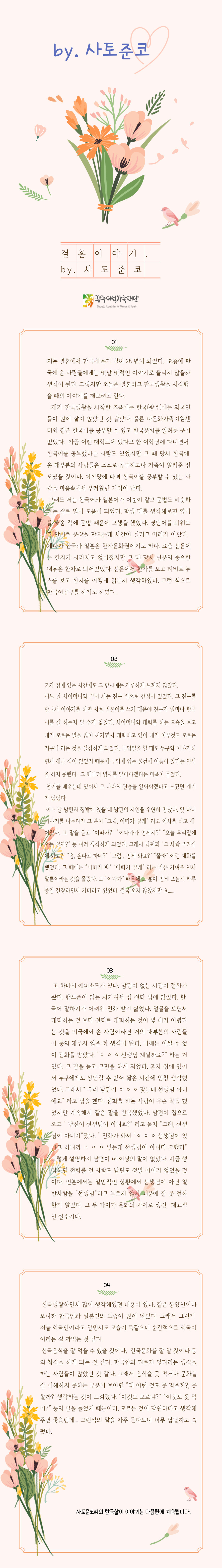 home 맘편한 내★일, 광주아이키움2.0 결혼·임신·출생 영유아 초·중·고 다양한 가족 일생활균형 커뮤니티 아동돌봄지원 소통방 나눔방 광주 아이키움 상담방 돌봄정보방 성폭력 피해 상담 및 사건지원 공지사항 이벤트소식 참여게시판 카드뉴스 동영상 아이키움 칼럼 성평등 육아웹툰 로고&캐릭터 사토준코's 결혼이야기(1) 등록일 : 2021-06-03 18:55 카테고리 : 카테고리 없음 작성자 : 운영자 조회수 : 2453 사토준코's 결혼이야기 1편 목록