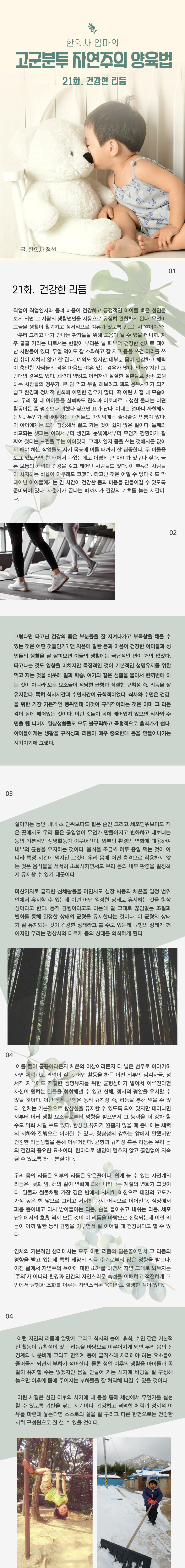 home 맘편한 내★일, 광주아이키움2.0 결혼·임신·출생 영유아 초·중·고 다양한 가족 일생활균형 커뮤니티 아동돌봄지원 소통방 나눔방 광주 아이키움 상담방 돌봄정보방 성폭력 피해 상담 및 사건지원 공지사항 이벤트소식 참여게시판 카드뉴스 동영상 아이키움 칼럼 성평등 육아웹툰 로고&캐릭터 <한의사 엄마의 고군분투 자연주의 양육법 21화 > 건강한 리듬 등록일 : 2021-10-05 13:30 카테고리 : 카테고리 없음 작성자 : 운영자 조회수 : 1528 목록