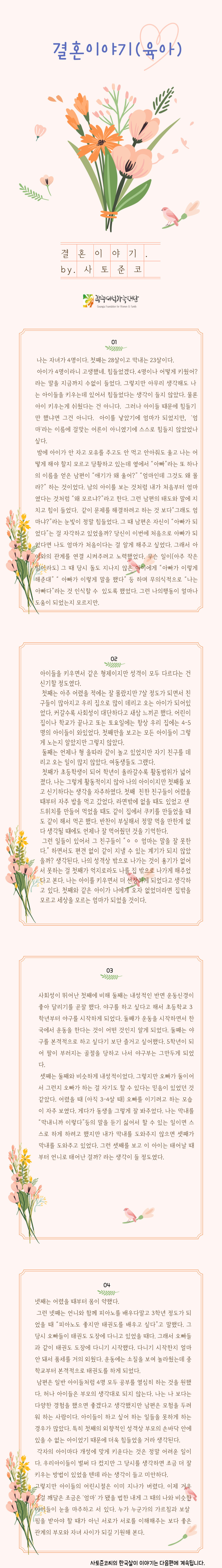 home 맘편한 내★일, 광주아이키움2.0 결혼·임신·출생 영유아 초·중·고 다양한 가족 일생활균형 커뮤니티 아동돌봄지원 소통방 나눔방 광주 아이키움 상담방 돌봄정보방 성폭력 피해 상담 및 사건지원 공지사항 이벤트소식 참여게시판 카드뉴스 동영상 아이키움 칼럼 성평등 육아웹툰 로고&캐릭터 사토준코's 결혼이야기(3) 육아 등록일 : 2021-06-17 19:42 카테고리 : 카테고리 없음 작성자 : 운영자 조회수 : 2099 목록
