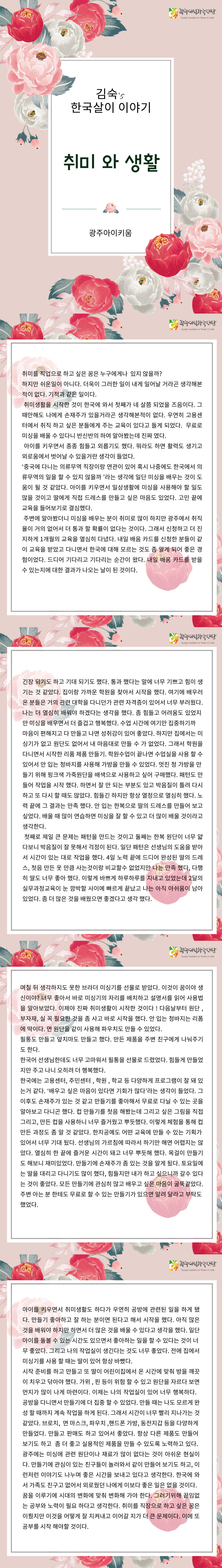 home 맘편한 내★일, 광주아이키움2.0 결혼·임신·출생 영유아 초·중·고 다양한 가족 일생활균형 커뮤니티 아동돌봄지원 소통방 나눔방 광주 아이키움 상담방 돌봄정보방 성폭력 피해 상담 및 사건지원 공지사항 이벤트소식 참여게시판 카드뉴스 동영상 아이키움 칼럼 성평등 육아웹툰 로고&캐릭터 김숙's 한국살이 이야기 5화. 취미와 생활 등록일 : 2021-08-05 19:03 카테고리 : 카테고리 없음 작성자 : 운영자 조회수 : 1808 목록