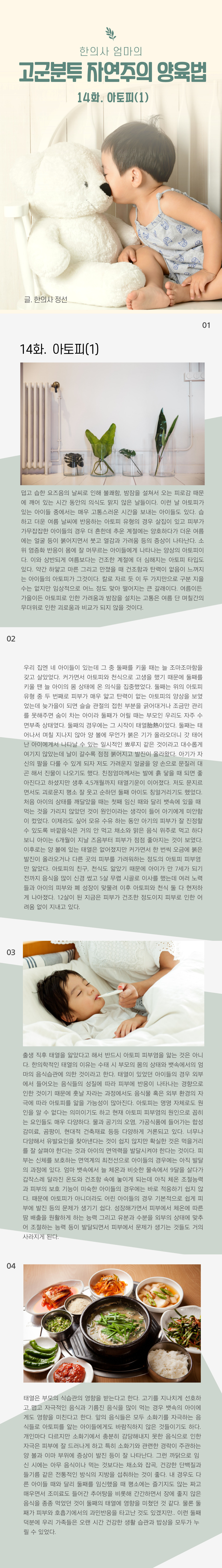 home 맘편한 내★일, 광주아이키움2.0 결혼·임신·출생 영유아 초·중·고 다양한 가족 일생활균형 커뮤니티 아동돌봄지원 소통방 나눔방 광주 아이키움 상담방 돌봄정보방 성폭력 피해 상담 및 사건지원 공지사항 이벤트소식 참여게시판 카드뉴스 동영상 아이키움 칼럼 성평등 육아웹툰 로고&캐릭터 <한의사 엄마의 고군분투 자연주의 양육법 14화 > 아토피(1) 등록일 : 2021-08-05 19:48 카테고리 : 카테고리 없음 작성자 : 운영자 조회수 : 1732 목록