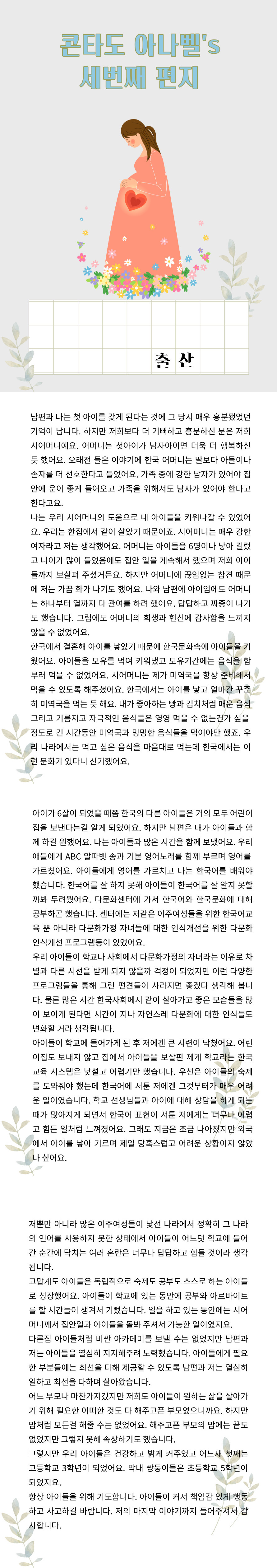 home 맘편한 내★일, 광주아이키움2.0 결혼·임신·출생 영유아 초·중·고 다양한 가족 일생활균형 커뮤니티 아동돌봄지원 소통방 나눔방 광주 아이키움 상담방 돌봄정보방 성폭력 피해 상담 및 사건지원 공지사항 이벤트소식 참여게시판 카드뉴스 동영상 아이키움 칼럼 성평등 육아웹툰 로고&캐릭터 콘타도 아나벨's 세번째편지 (출산) 등록일 : 2021-08-26 18:02 카테고리 : 카테고리 없음 작성자 : 운영자 조회수 : 1685 목록