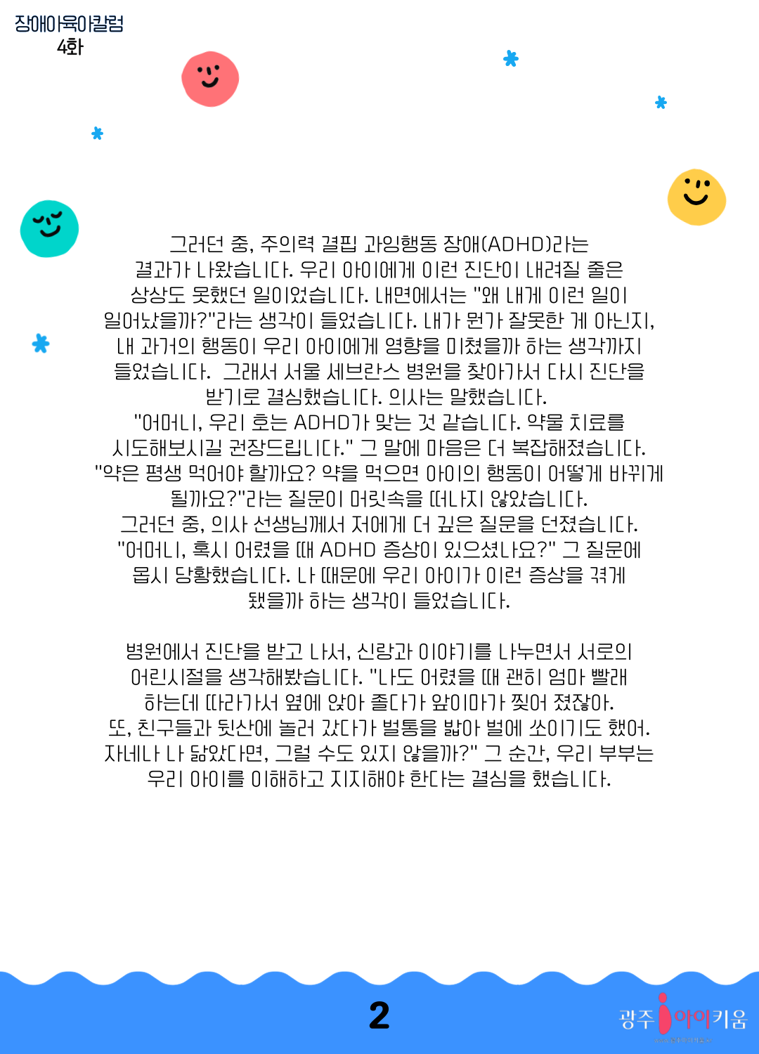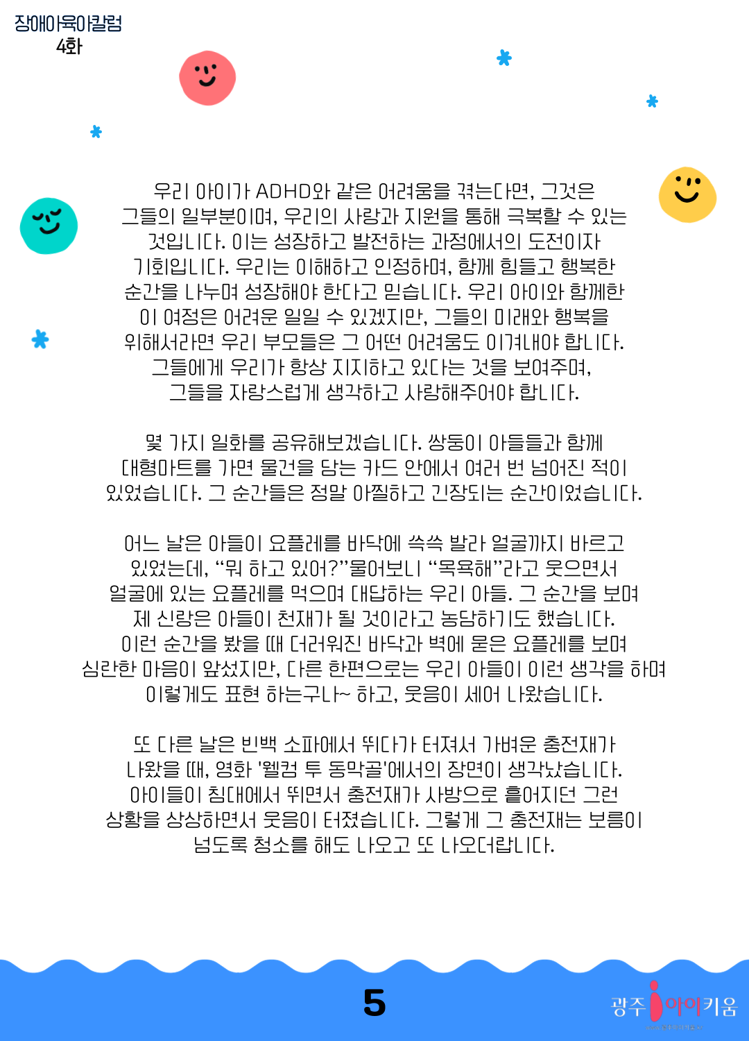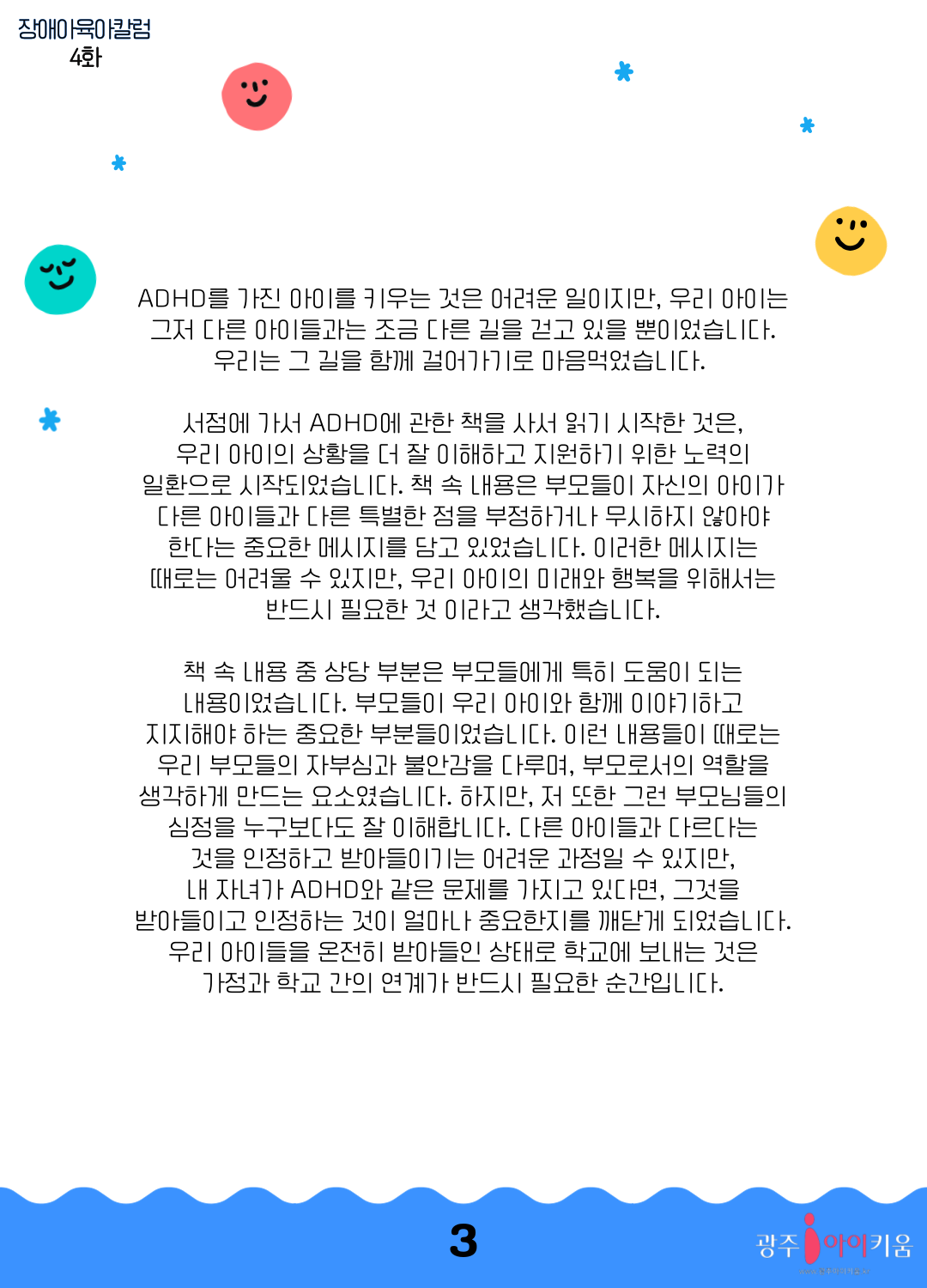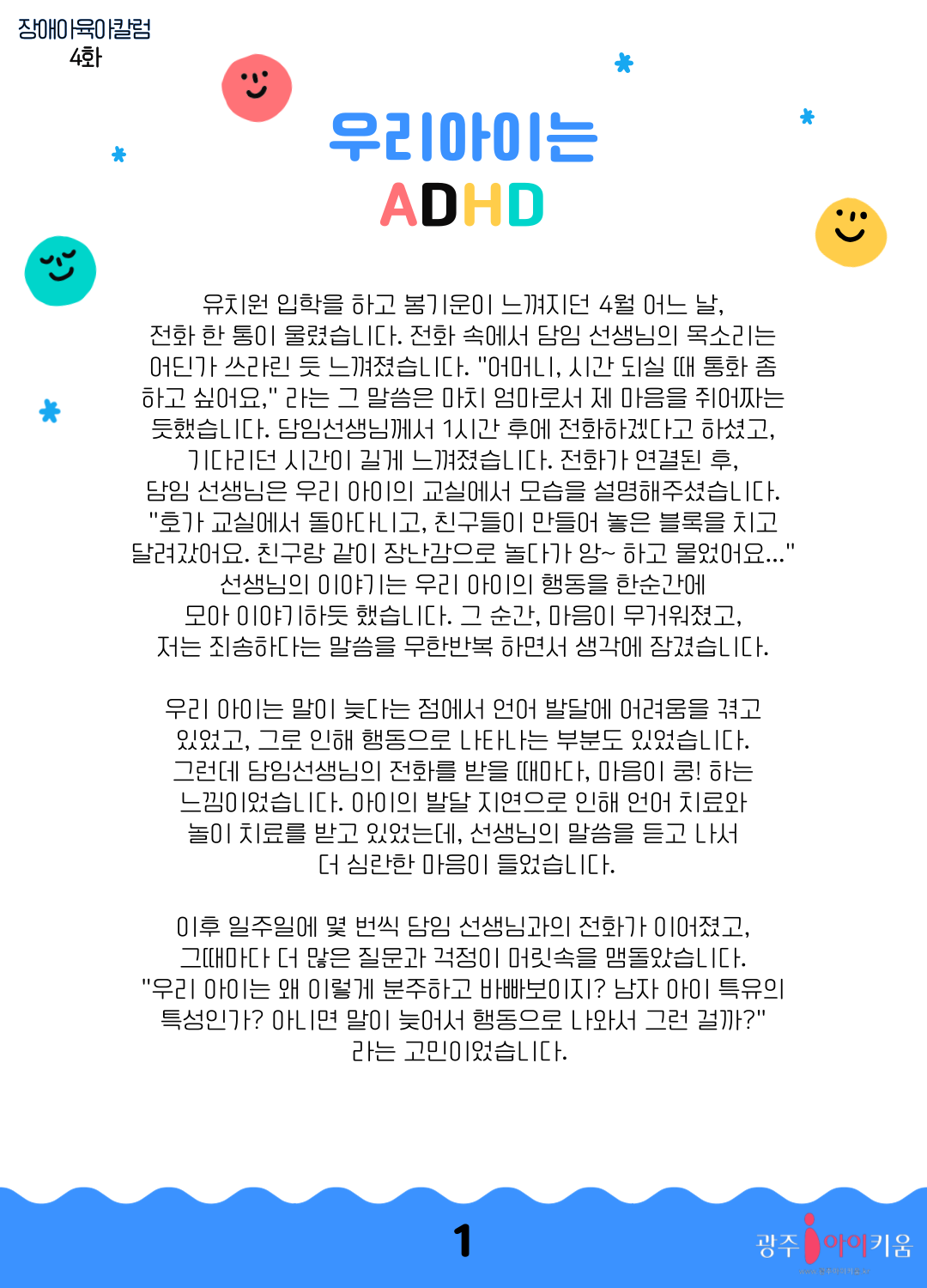 home 맘편한 내★일, 광주아이키움2.0 결혼·임신·출생 영유아 초·중·고 다양한 가족 일생활균형 커뮤니티 아동돌봄지원 소통방 나눔방 광주 아이키움 상담방 돌봄정보방 성폭력 피해 상담 및 사건지원 공지사항 이벤트소식 참여게시판 카드뉴스 동영상 아이키움 칼럼 성평등 육아웹툰 로고&캐릭터 [장애아육아칼럼] 우리아이는 ADHD 등록일 : 2023-09-21 11:16 카테고리 : 카테고리 없음 작성자 : 운영자 조회수 : 1106 목록