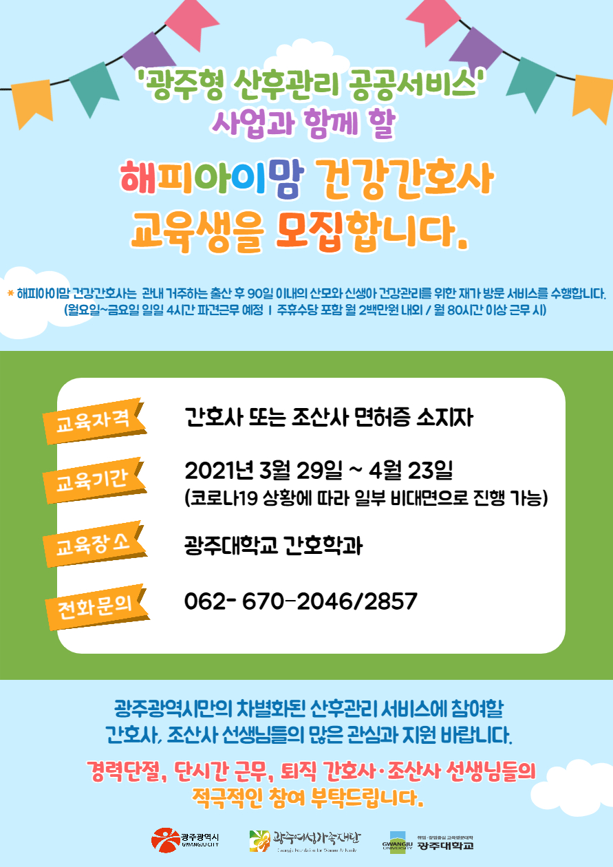 home 맘편한 내★일, 광주아이키움2.0 결혼·임신·출생 영유아 초·중·고 다양한 가족 일생활균형 커뮤니티 아동돌봄지원 소통방 나눔방 광주 아이키움 상담방 돌봄정보방 성폭력 피해 상담 및 사건지원 공지사항 해피아이맘 건강간호사 교육생 모집 등록일 : 2021-03-10 16:25 작성자 : 운영자 조회수 : 1497 목록