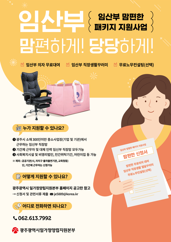 - 문의 및 접수기관 : 광주광역시 일가정양립지원본부 직장맘지원센터 (062-613-7992)