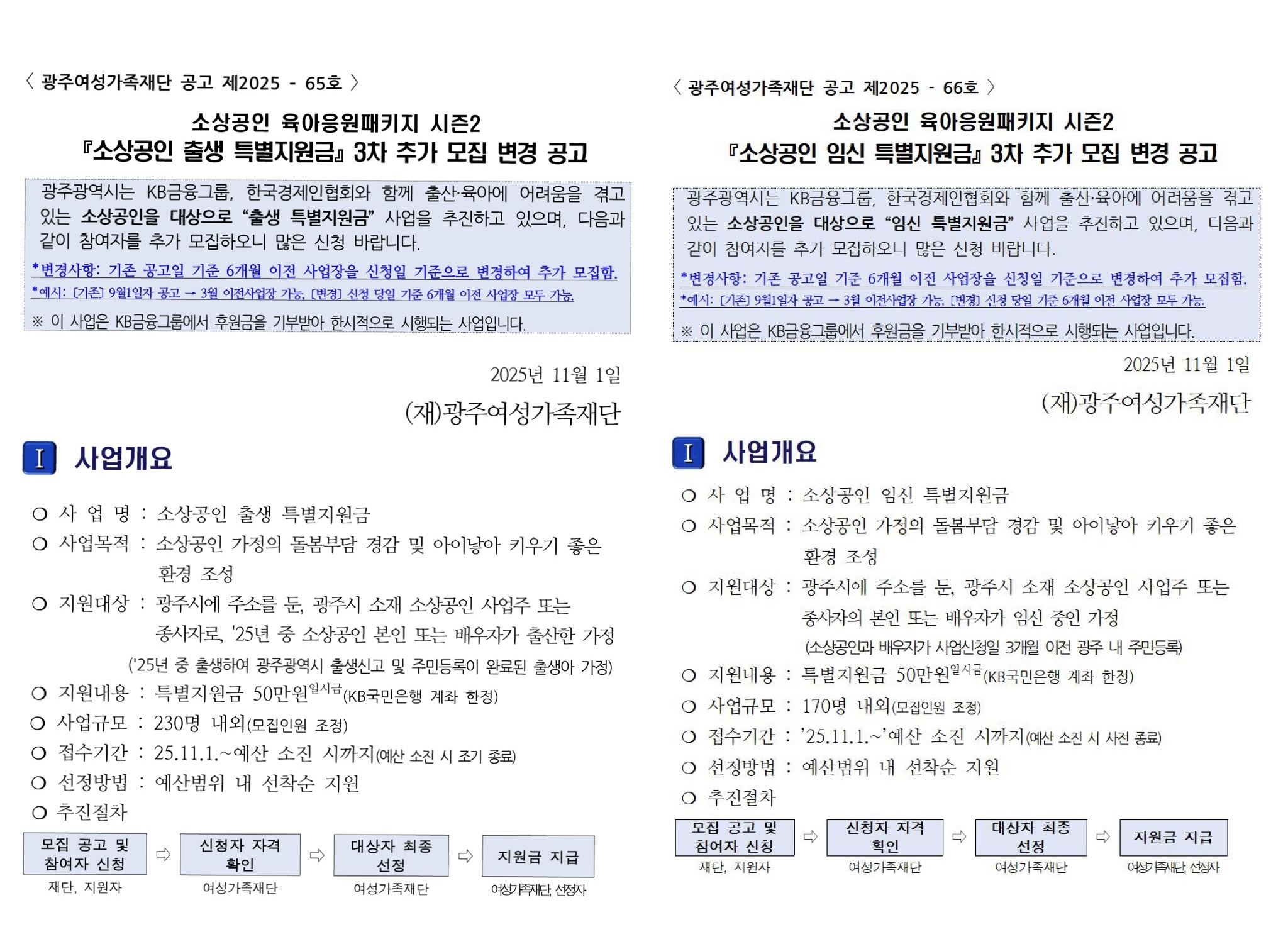 또는, 광주광역시에 주소를 둔 본인 또는 배우자가 임신 중인 가정의 소상공인 사업주 및 종사자 여러분의 많은 관심 부탁드립니다.