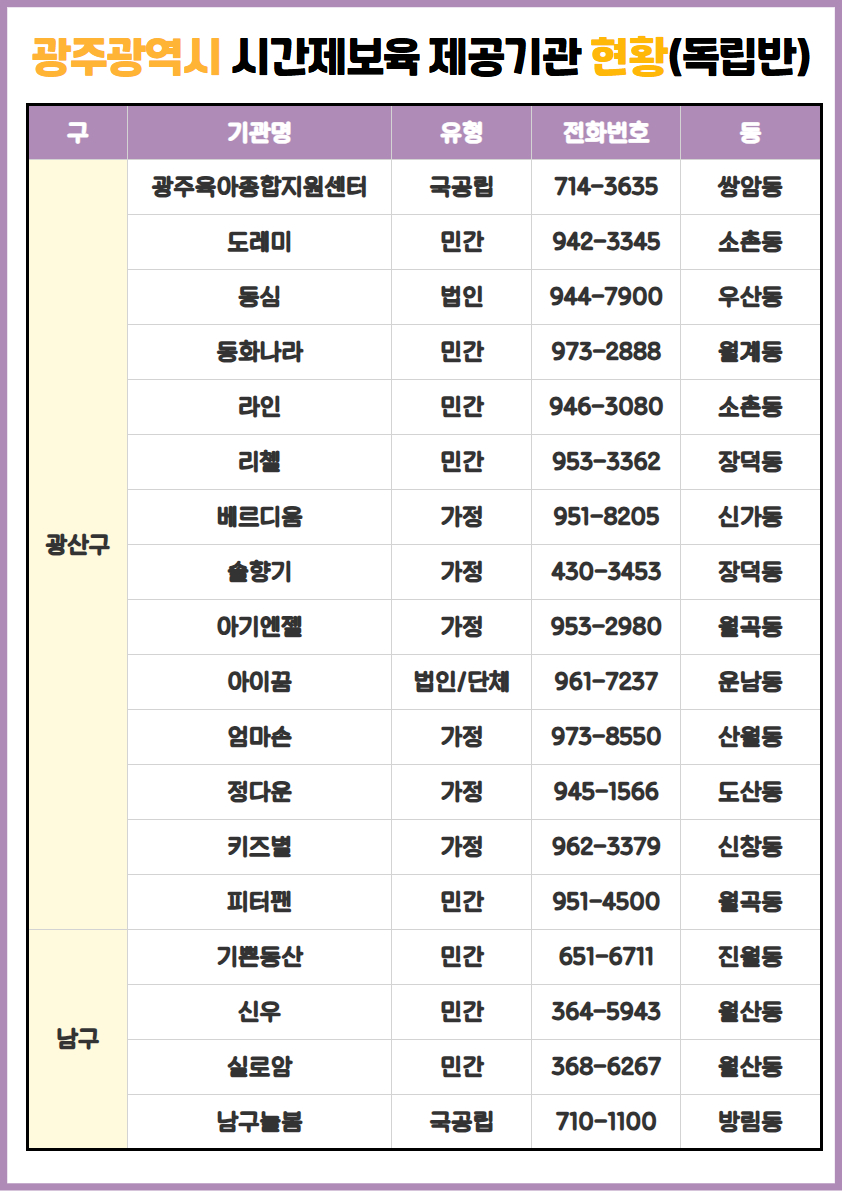 - 제공기관 : 시간제보육 제공기관으로 지정된 어린이집, 육아종합지원센터 등