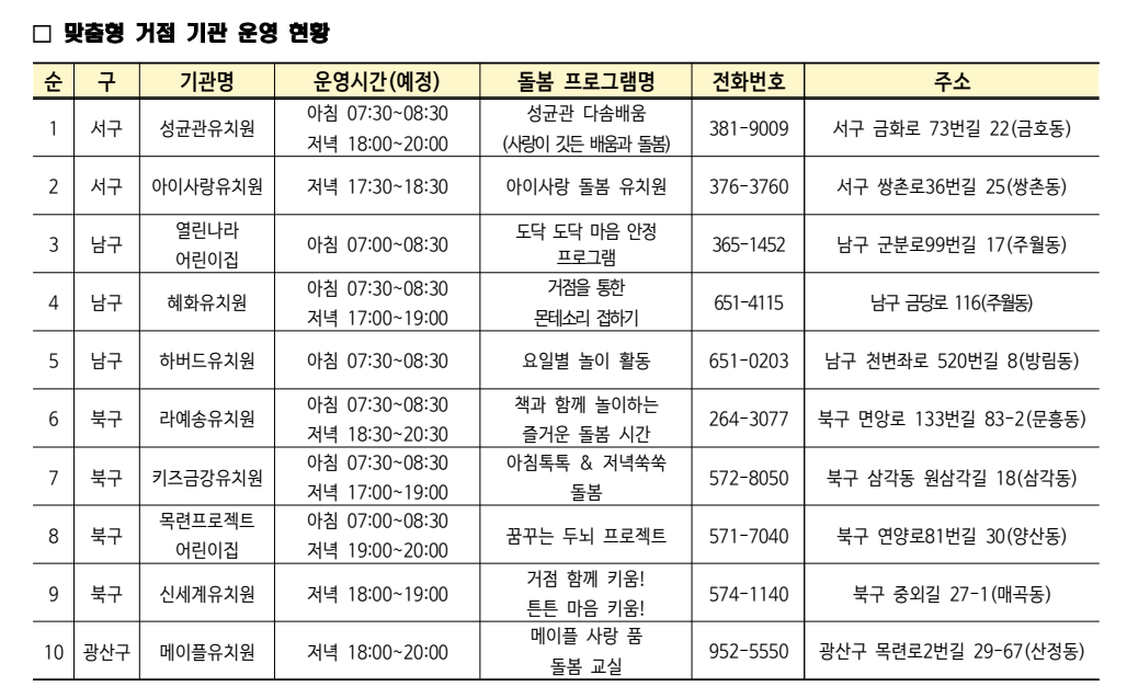 운영문의 : 광주광역시교육청 유보통합추진팀(062-570-1305)