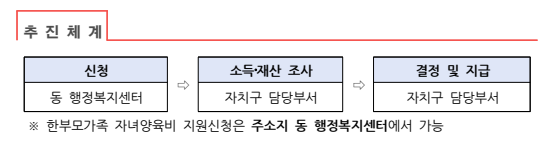 - 세대주의 거주지 관할 동 행정복지센터 및 복지로(bokjiro.go.kr) 홈페이지에서 연중 신청 가능
