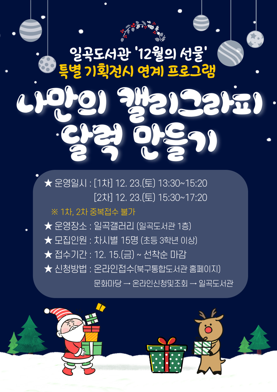일곡도서관 '12월의 선물' 프로그램을 아래와 같이 운영합니다!