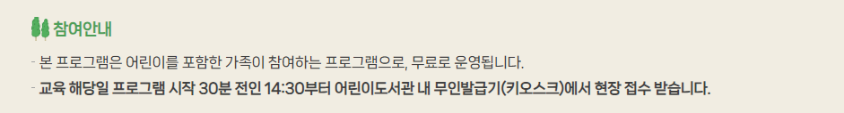- 신청 현장접수 / 프로그램 시작 1시간 전부터