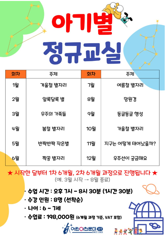 <광주어린이천문대 -아기별 정규교실 대원 모집>