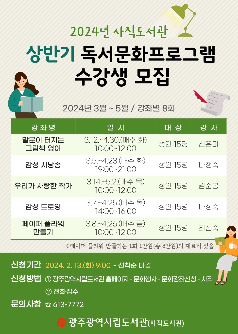 home 맘편한 내★일, 광주아이키움2.0 결혼·임신·출생 영유아 초·중·고 다양한 가족 일생활균형 커뮤니티 아동돌봄지원 소통방 나눔방 광주 아이키움 상담방 돌봄정보방 성폭력 피해 상담 및 사건지원 공지사항 우리동네 돌봄정보 기관별 공지사항 [사직도서관] 2024 상반기 독서문화프로그램 수강생 모집 등록일 : 2024-02-16 14:45 카테고리 : 카테고리 없음 작성자 : 운영자 조회수 : 271 목록