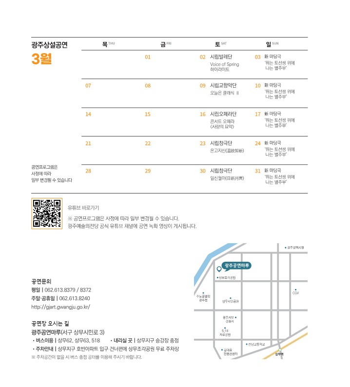 [광주예술의전당] 3월 광주상설공연(광주공연마루)