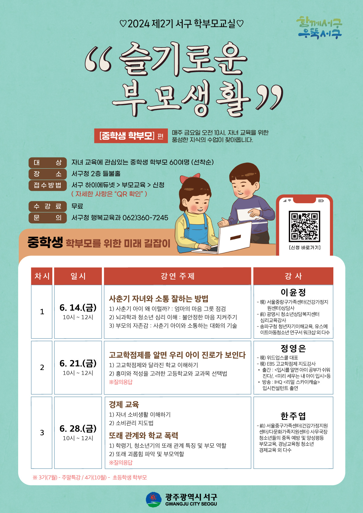 home 맘편한 내★일, 광주아이키움2.0 결혼·임신·출생 영유아 초·중·고 다양한 가족 일생활균형 커뮤니티 아동돌봄지원 소통방 나눔방 광주 아이키움 상담방 돌봄정보방 성폭력 피해 상담 및 사건지원 공지사항 우리동네 돌봄정보 기관별 공지사항 [서구]슬기로운 부모생활 - 중학생 부모편 등록일 : 2024-05-21 14:02 카테고리 : 카테고리 없음 작성자 : 운영자 조회수 : 218 목록