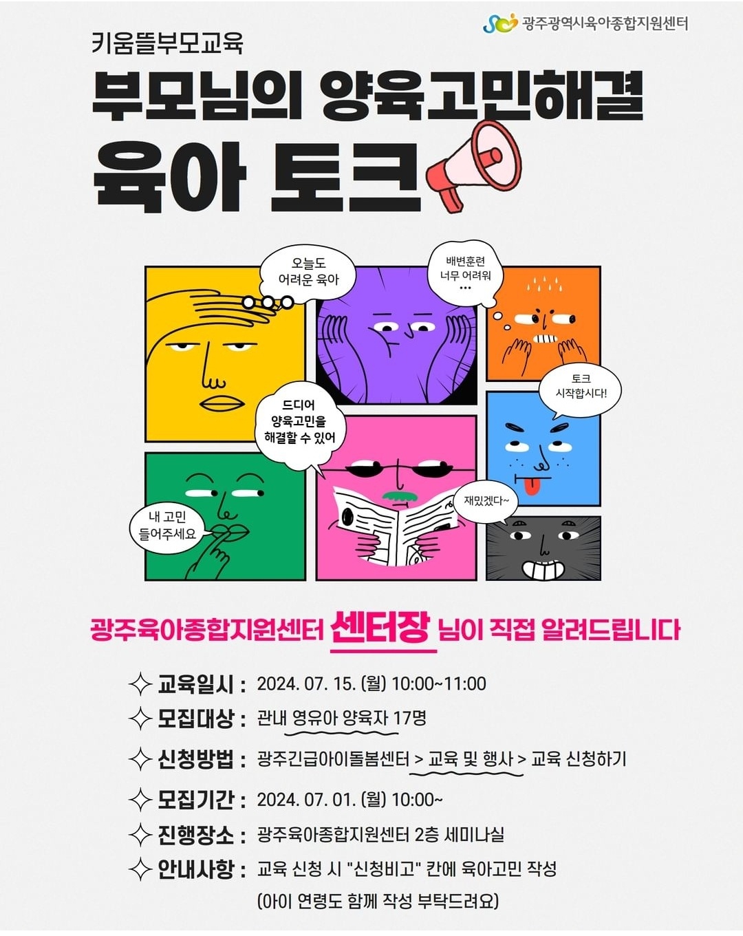 home 맘편한 내★일, 광주아이키움2.0 결혼·임신·출생 영유아 초·중·고 다양한 가족 일생활균형 커뮤니티 아동돌봄지원 소통방 나눔방 광주 아이키움 상담방 돌봄정보방 성폭력 피해 상담 및 사건지원 공지사항 우리동네 돌봄정보 기관별 공지사항 [키움뜰부모교육] 양육고민해결 육아토크 등록일 : 2024-07-06 00:00 카테고리 : 카테고리 없음 작성자 : 운영자 조회수 : 192 육아토크.jpg 다운로드 목록