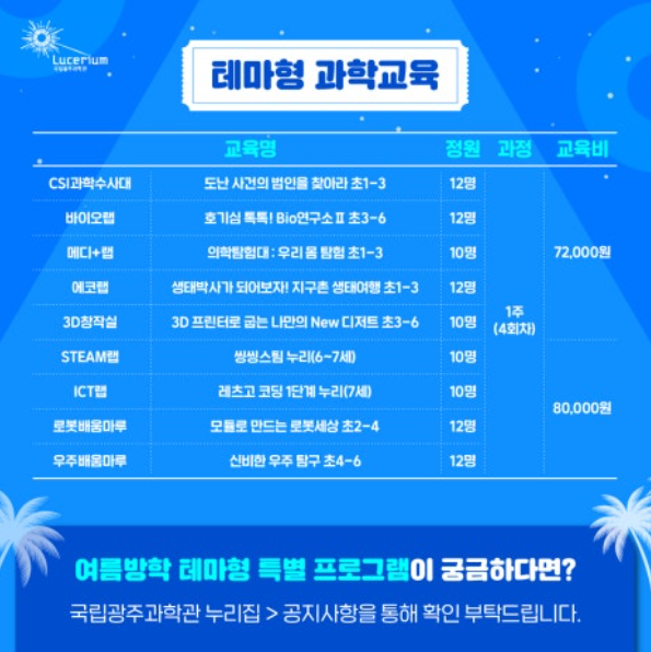 home 맘편한 내★일, 광주아이키움2.0 결혼·임신·출생 영유아 초·중·고 다양한 가족 일생활균형 커뮤니티 아동돌봄지원 소통방 나눔방 광주 아이키움 상담방 돌봄정보방 성폭력 피해 상담 및 사건지원 공지사항 우리동네 돌봄정보 기관별 공지사항 [국립광주과학관] 여름방학 테마형 특별 프로그램 안내 등록일 : 2024-07-16 08:54 카테고리 : 카테고리 없음 작성자 : 운영자 조회수 : 205 <출처> 국립광주과학관 목록