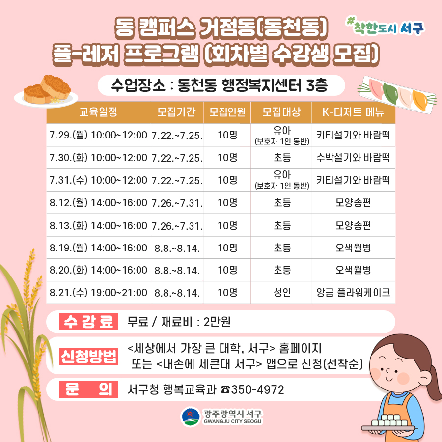 home 맘편한 내★일, 광주아이키움2.0 결혼·임신·출생 영유아 초·중·고 다양한 가족 일생활균형 커뮤니티 아동돌봄지원 소통방 나눔방 광주 아이키움 상담방 돌봄정보방 성폭력 피해 상담 및 사건지원 공지사항 우리동네 돌봄정보 기관별 공지사항 [서구] 건강한 우리쌀로 K-디저트 만들기 등록일 : 2024-07-26 17:39 카테고리 : 카테고리 없음 작성자 : 운영자 조회수 : 197 [출처: 광주광역시 서구] 목록